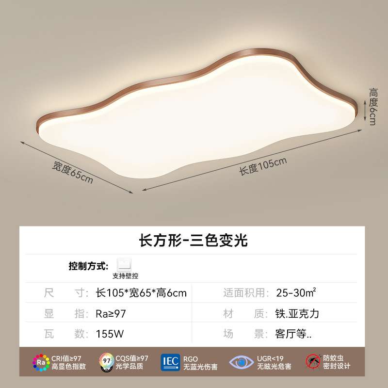 新中式长方形客厅吸顶灯中古风超薄现代简约全光谱波浪护眼卧室灯