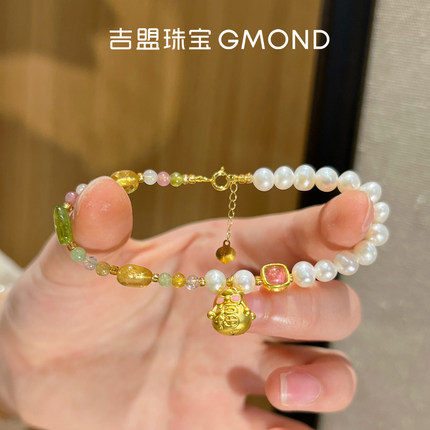 吉盟珠宝黄金福袋手链足金手串配18K金珍珠碧玺甜美新中式送女友