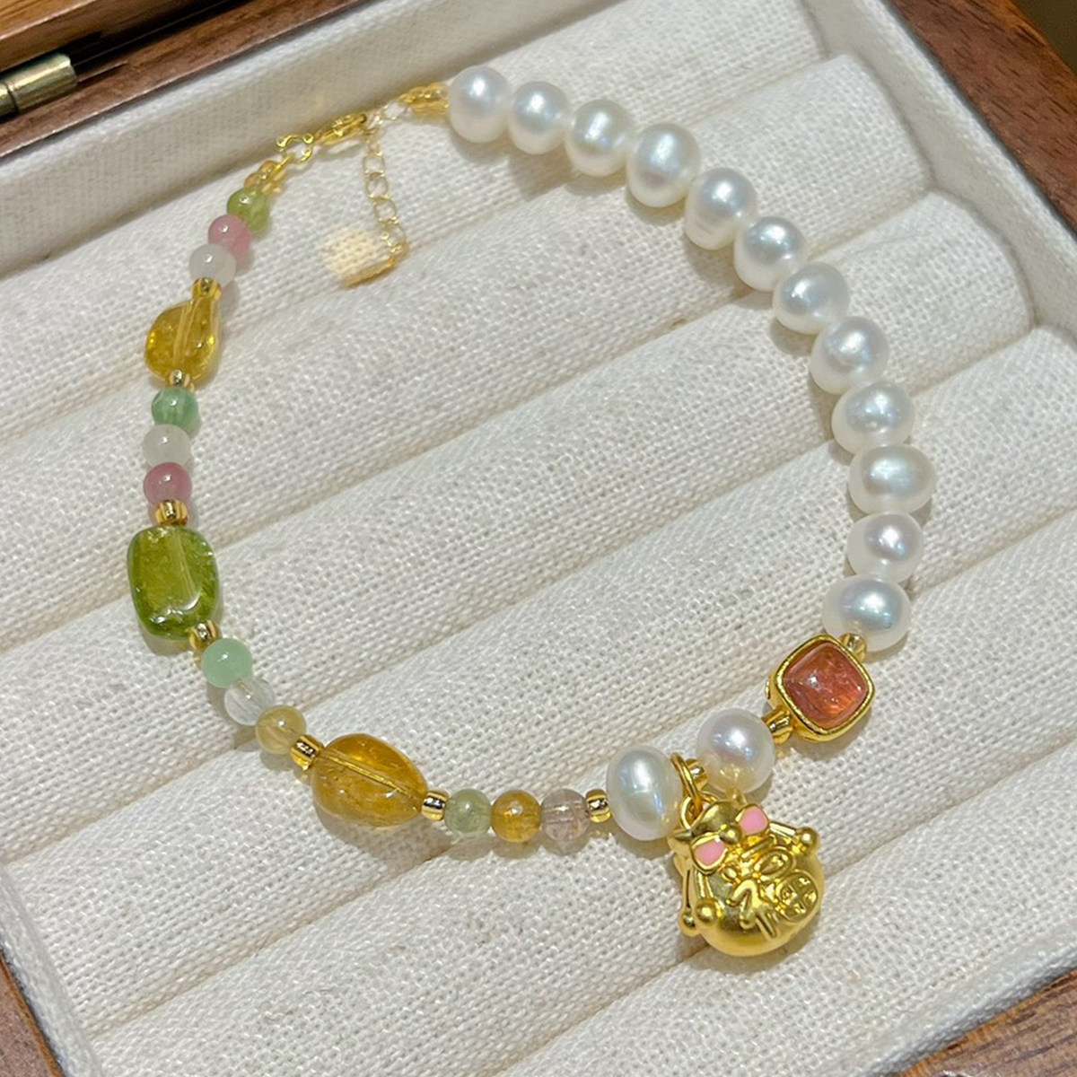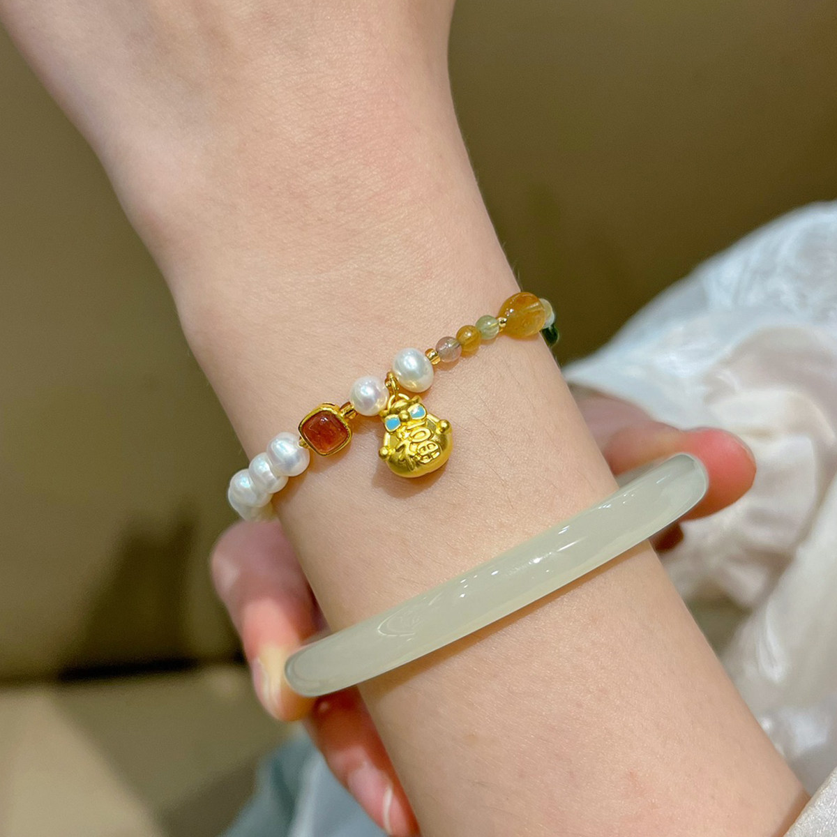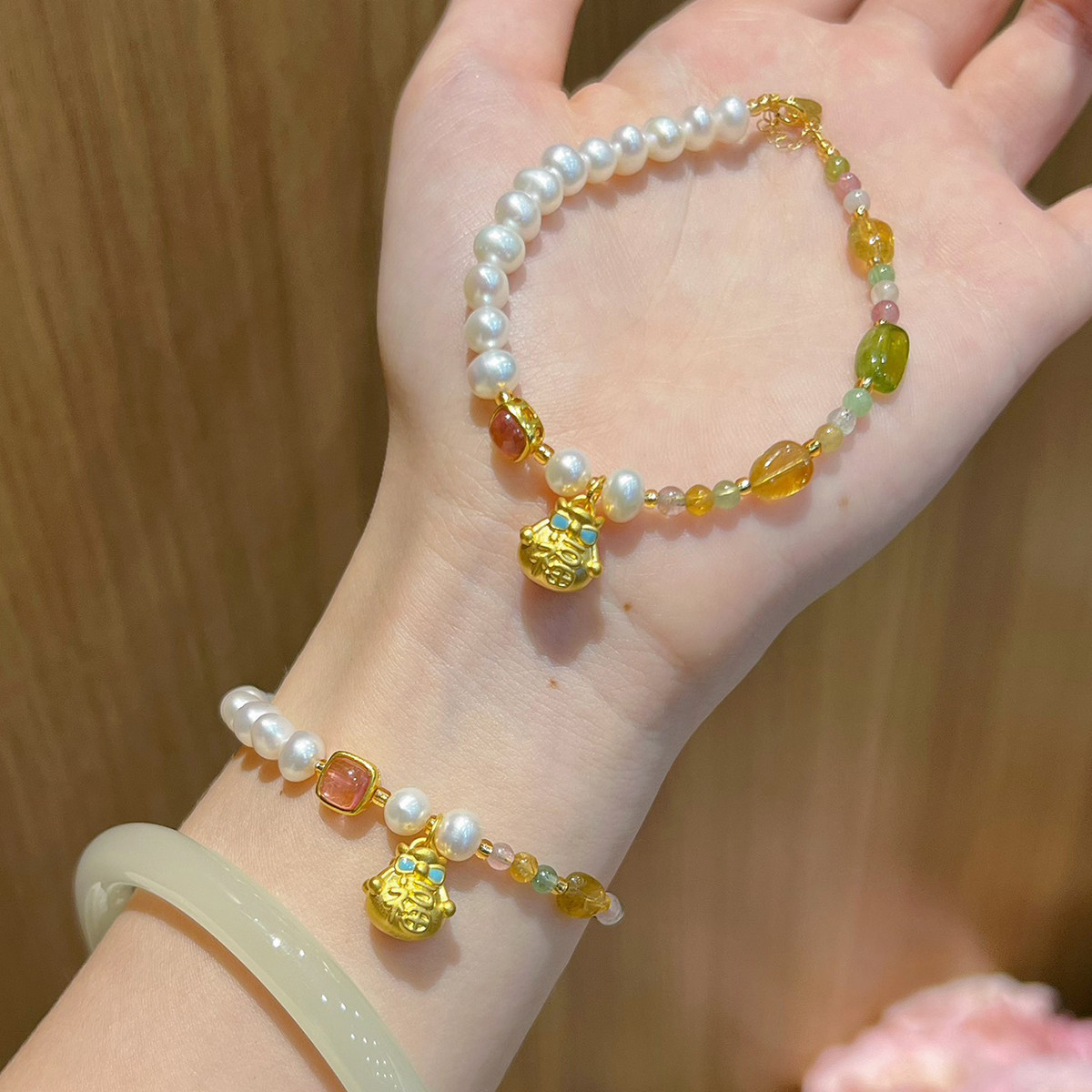 黄金福袋手链足金手串珍珠碧玺