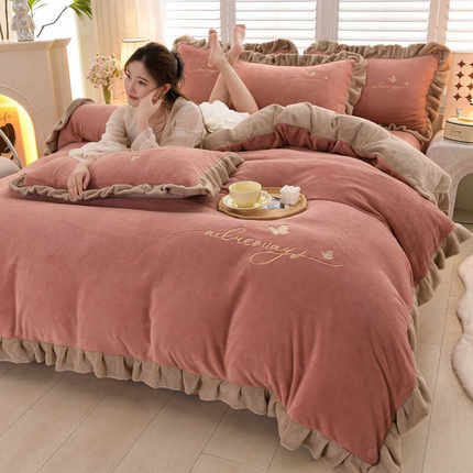 冬季a类加厚牛奶绒四件套双面加绒珊瑚绒床单被套法兰绒床上用品