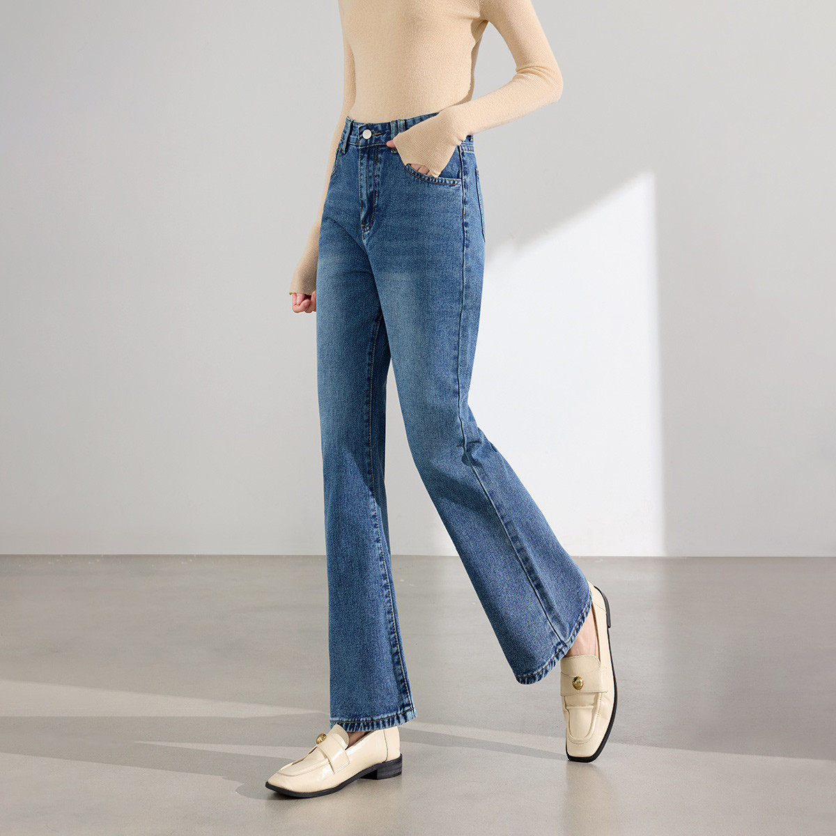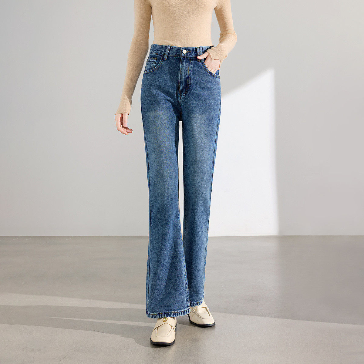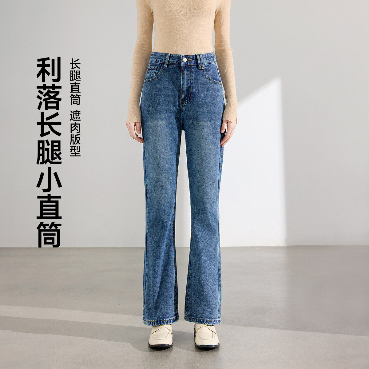 茵曼2026春季新款美式牛仔裤女士直筒高腰显瘦微喇阔腿裤子小个子