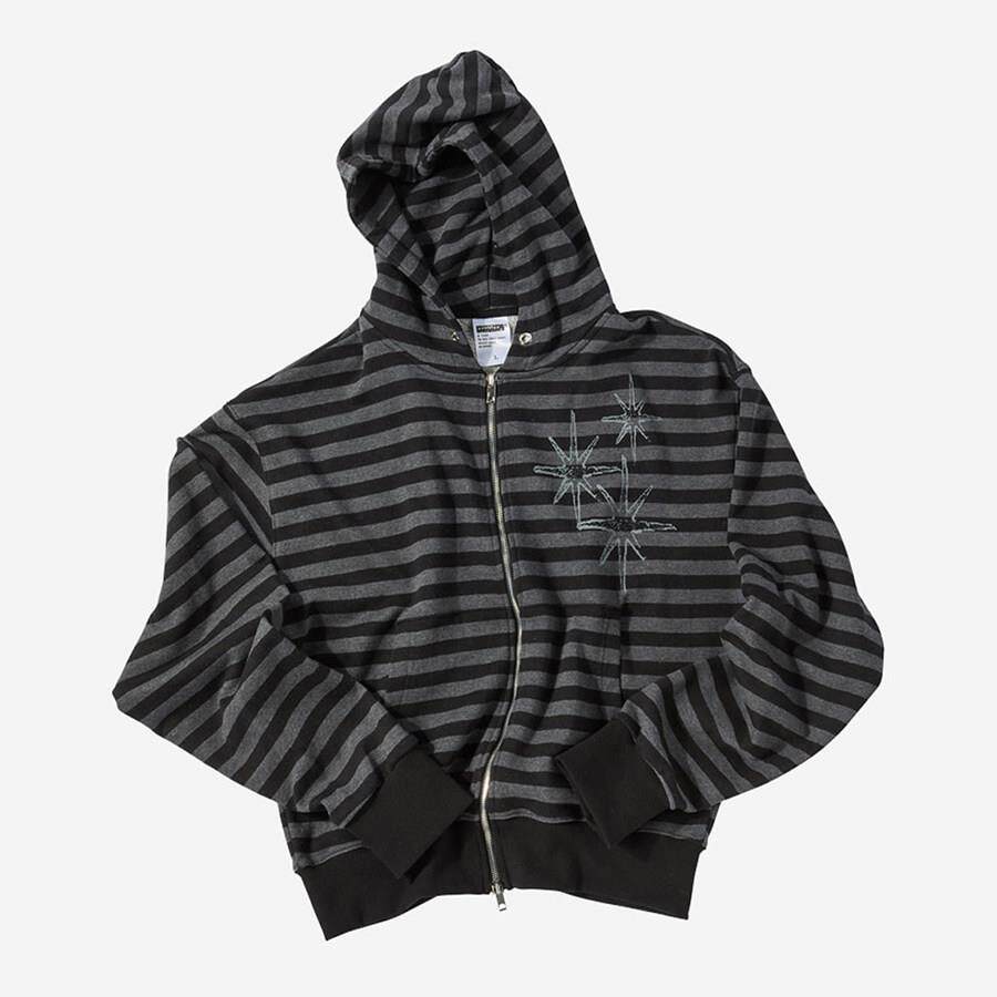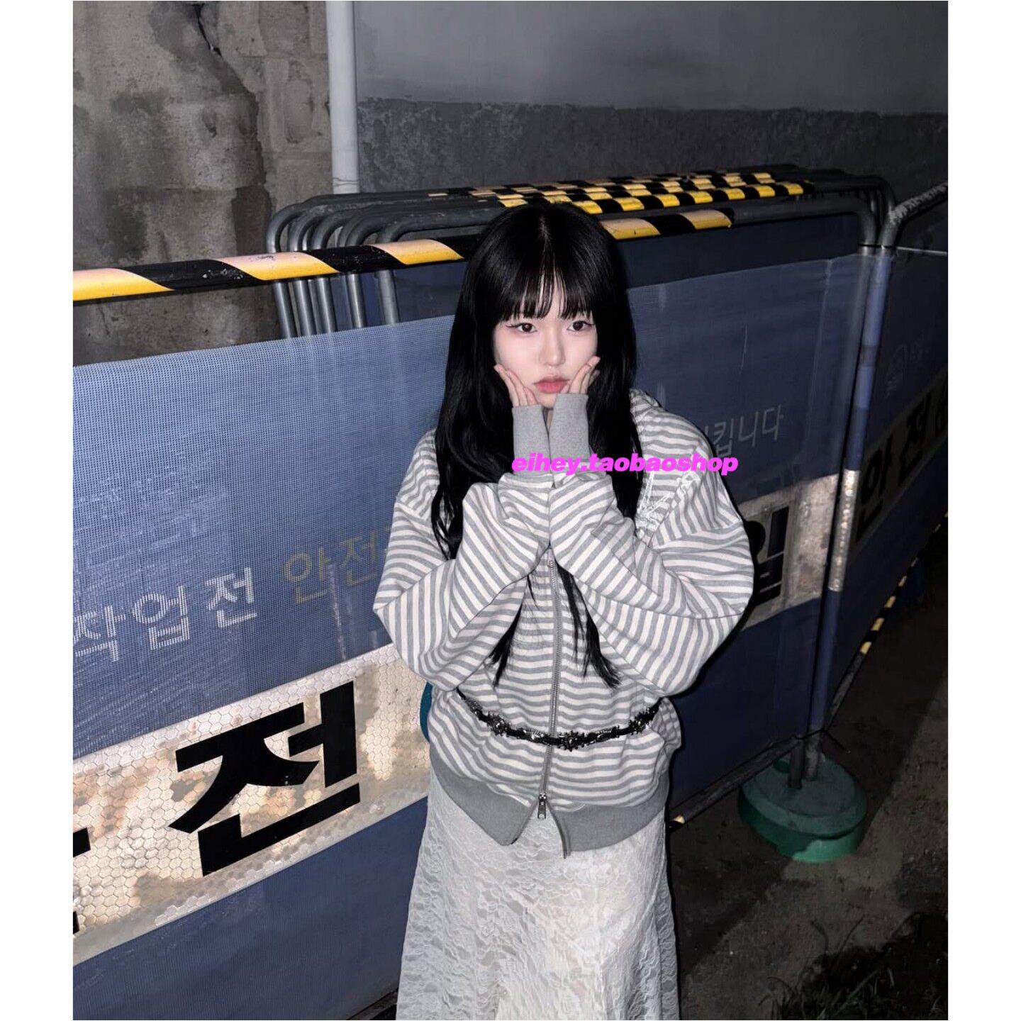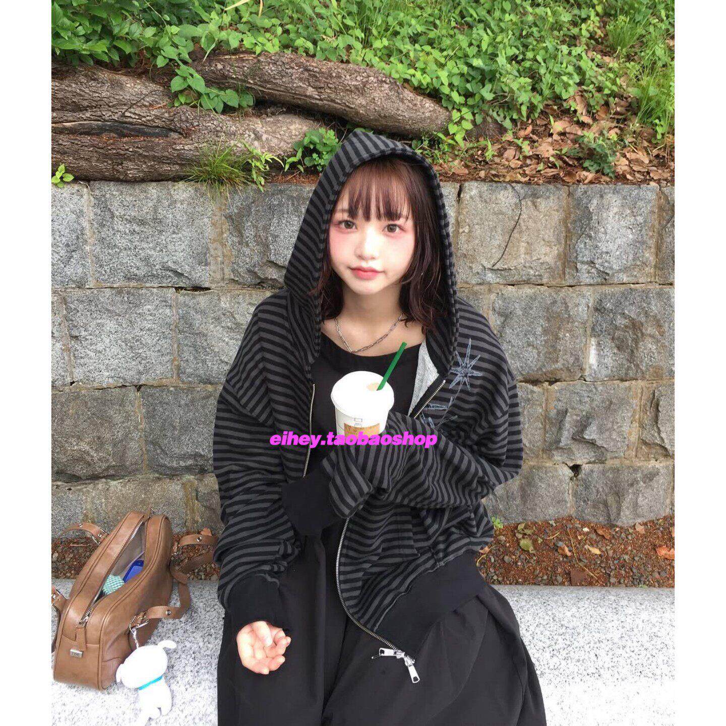 eihey诶嘿秋季新款星星拉链连帽卫衣条纹休闲宽松复古外套上衣女