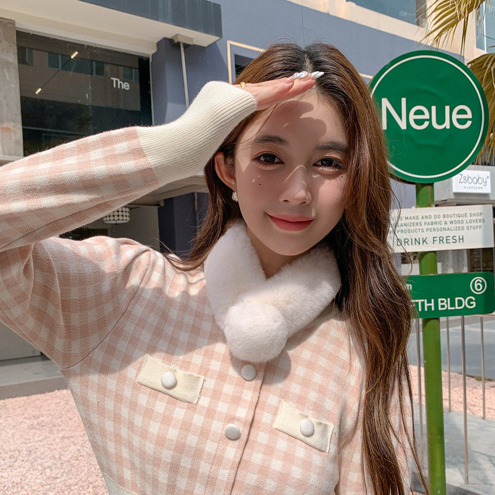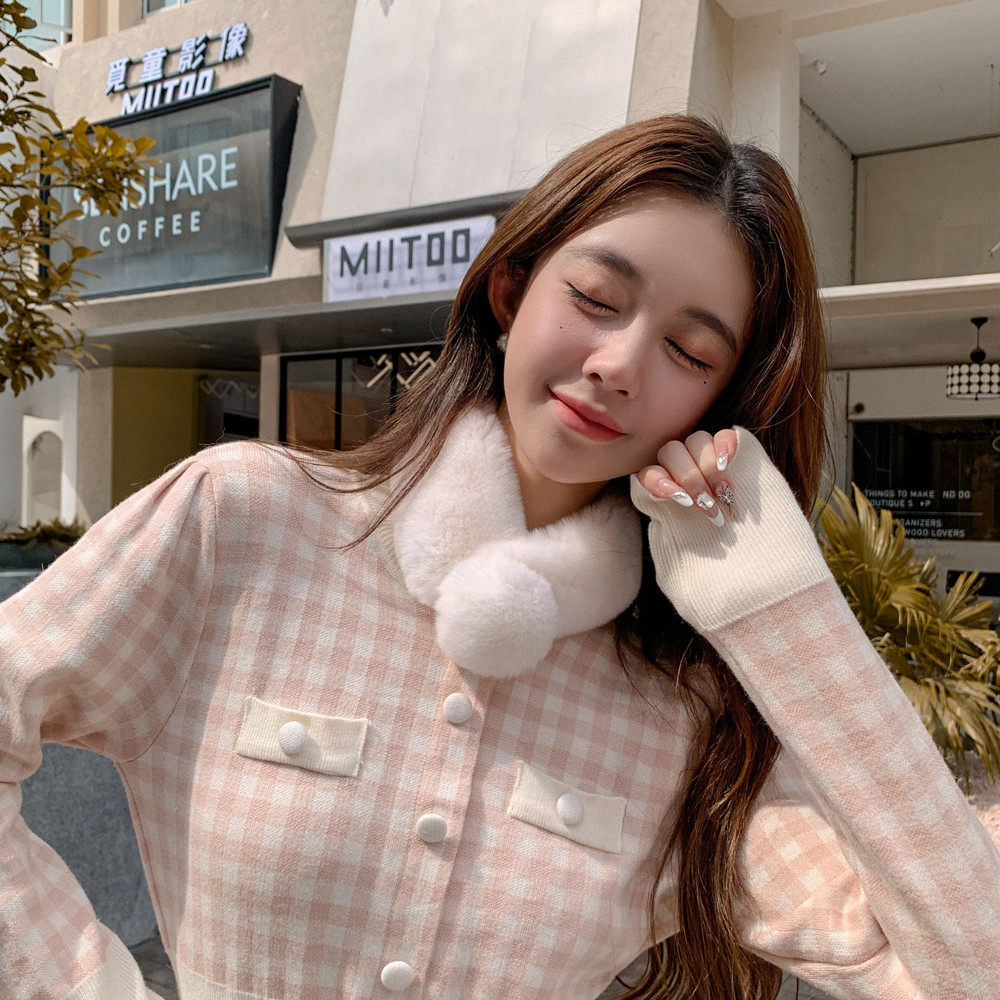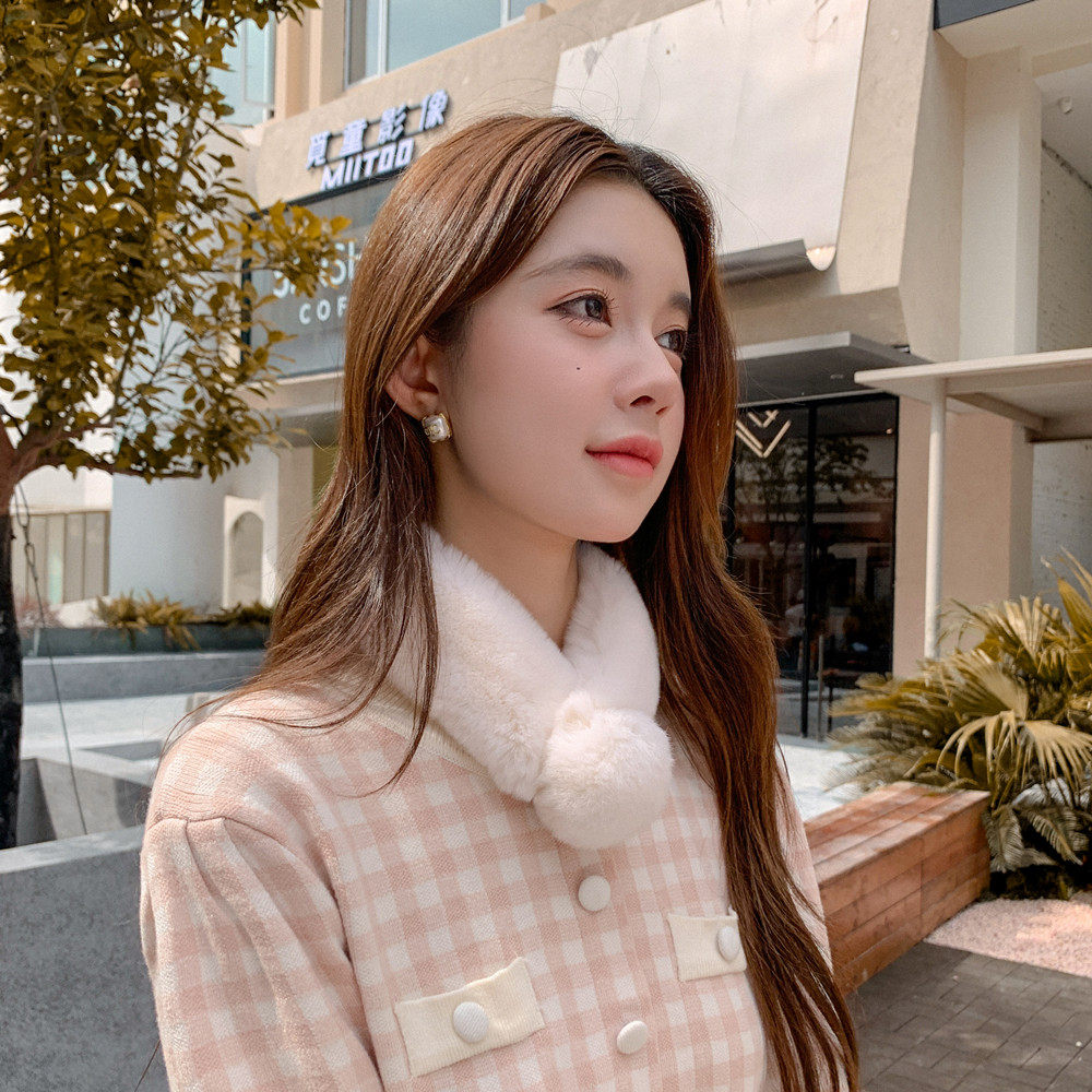精致小版獭兔毛围巾冬季保暖真毛山茶花围脖球球气质装饰围巾女