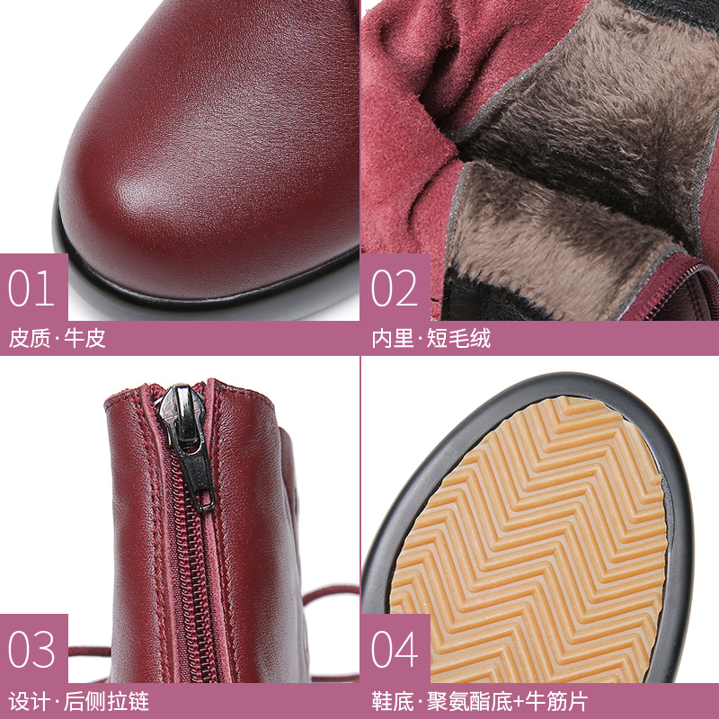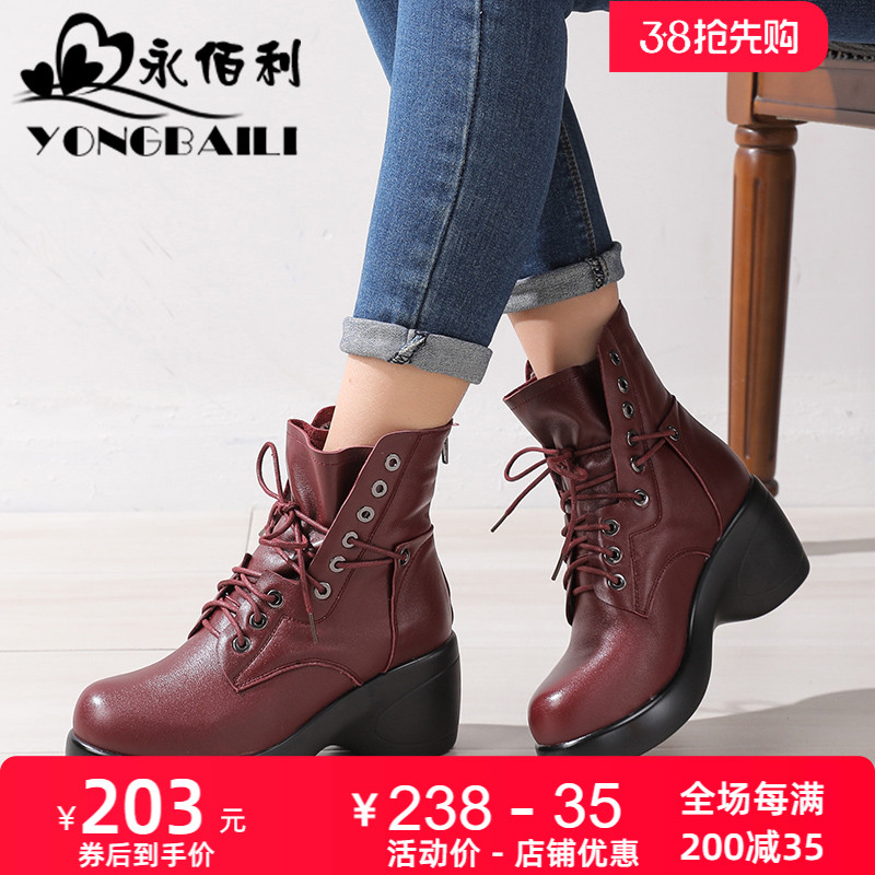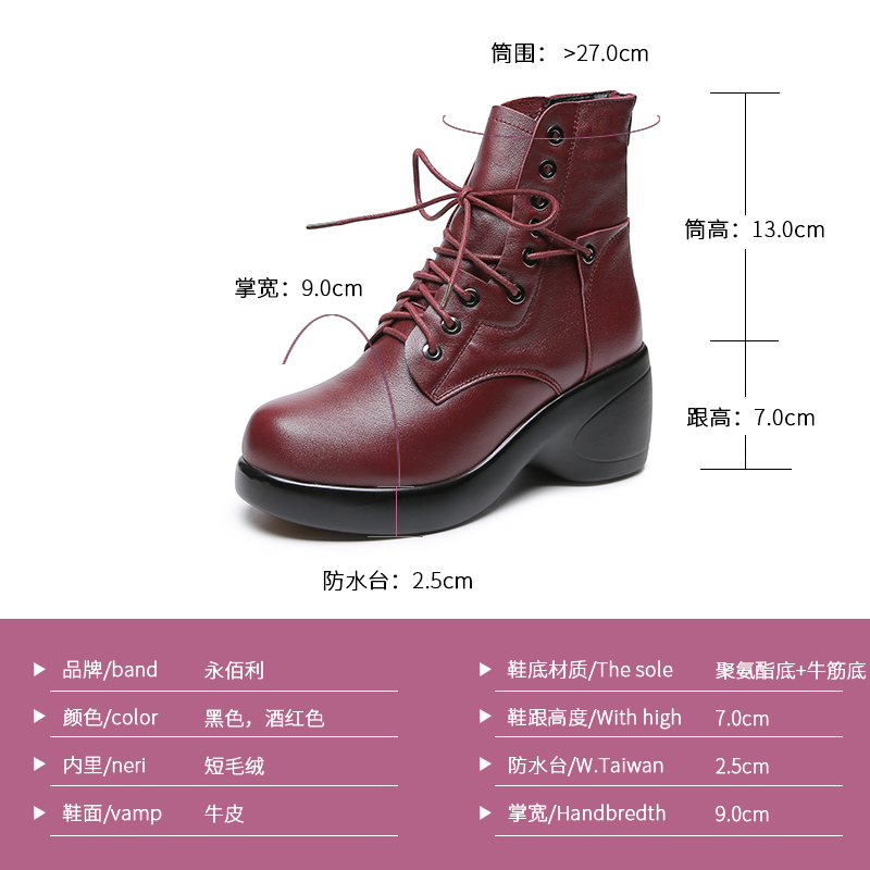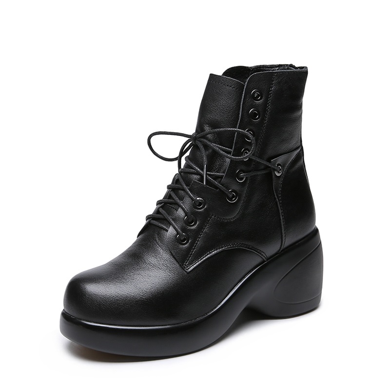 厚底高跟真皮短靴女2025冬季新款加绒保暖圆头马丁靴休闲软底皮鞋