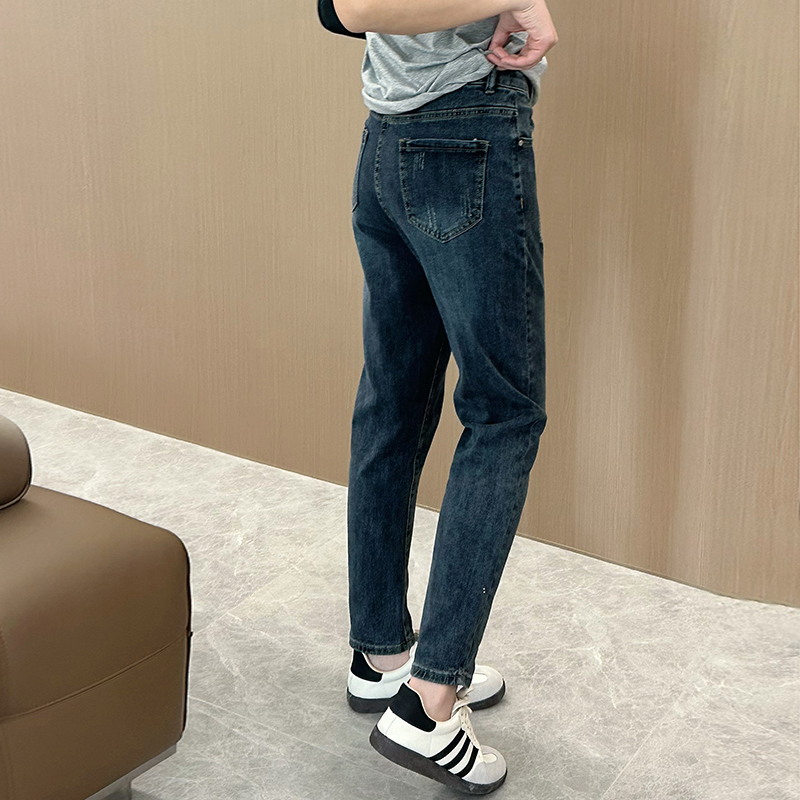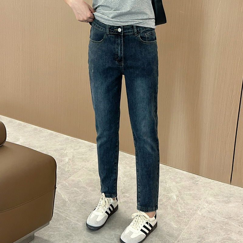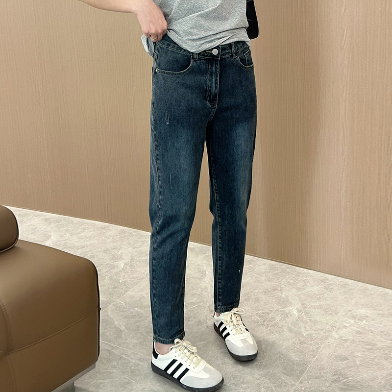 大码复古2025春夏新款胖mm牛仔裤九分直筒高腰显瘦修身烟管小脚裤