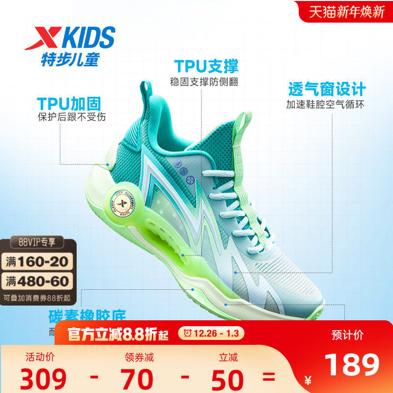 特步童鞋儿童运动鞋夏季新款男童透气防滑耐磨篮球鞋大童减震鞋子
