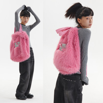 CryingCenter 特别蓝大logo毛绒绒束绳包背包 哭喊中心