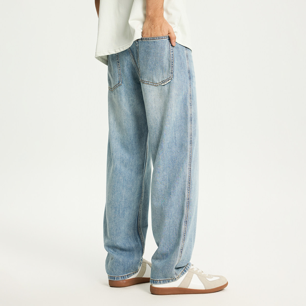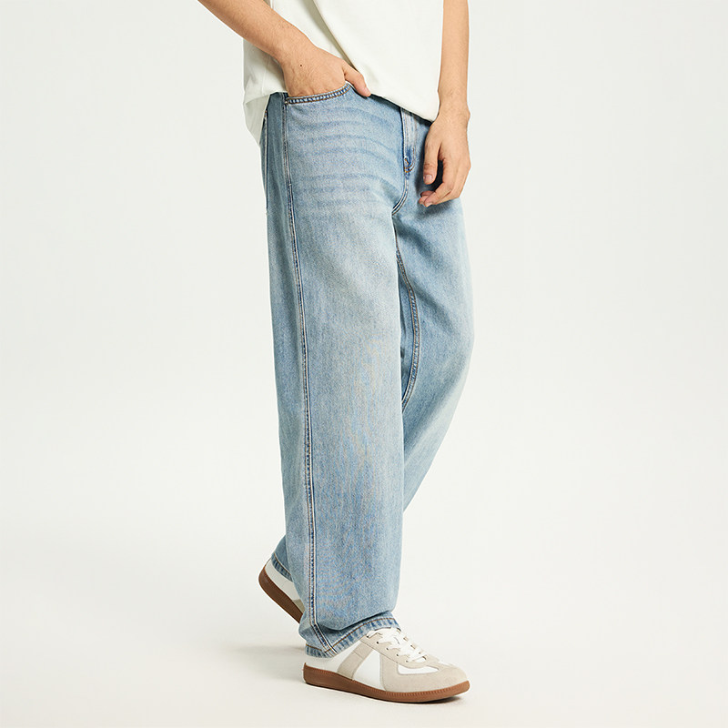 PKL 春夏莱赛尔天丝牛仔裤男宽松直筒大码美式垂感阔腿休闲长裤子
