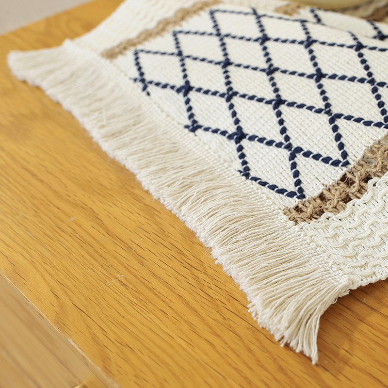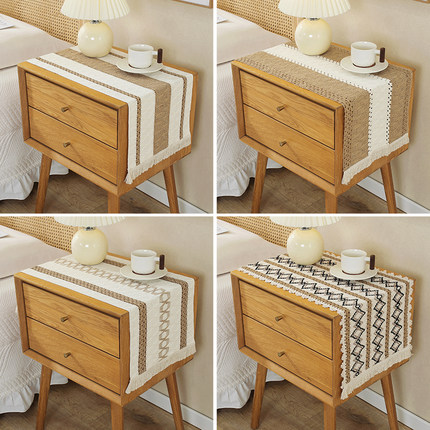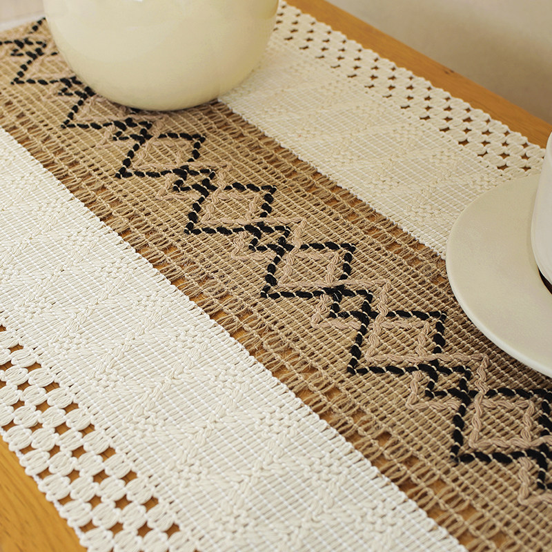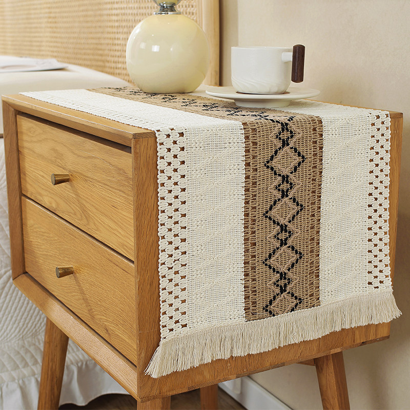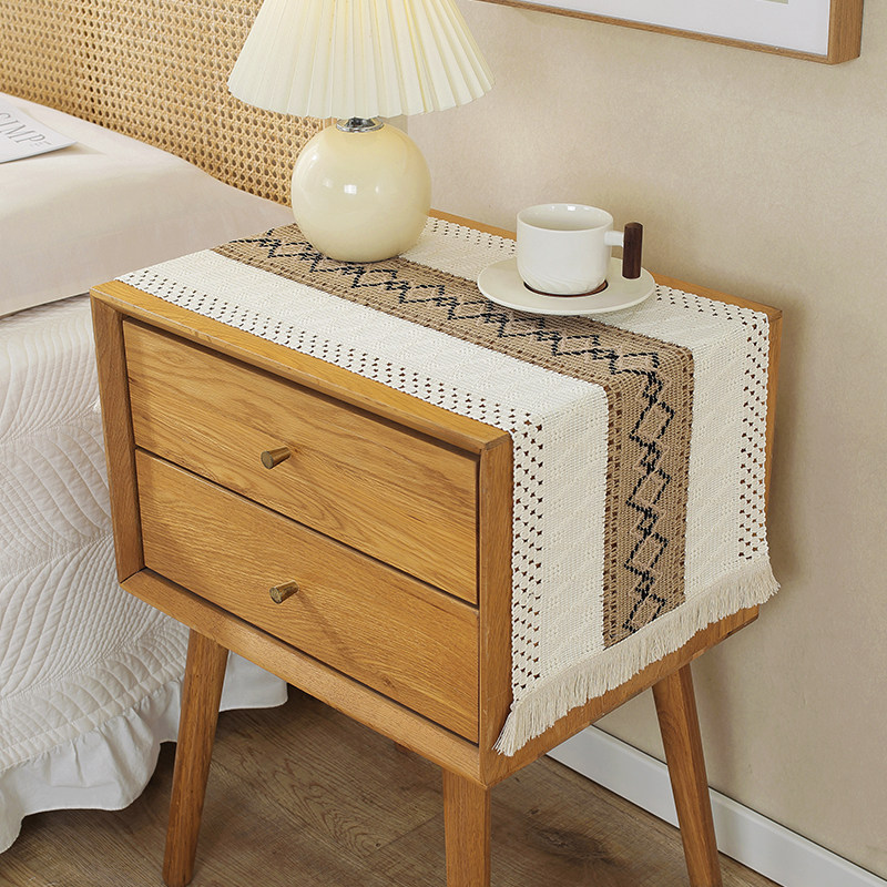 北欧简约轻奢简约棉麻桌旗拼色流苏长桌布简约风节日茶台桌旗装饰
