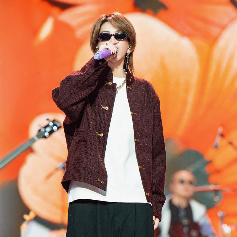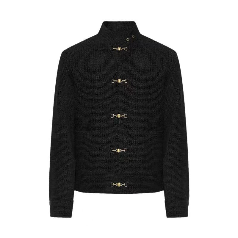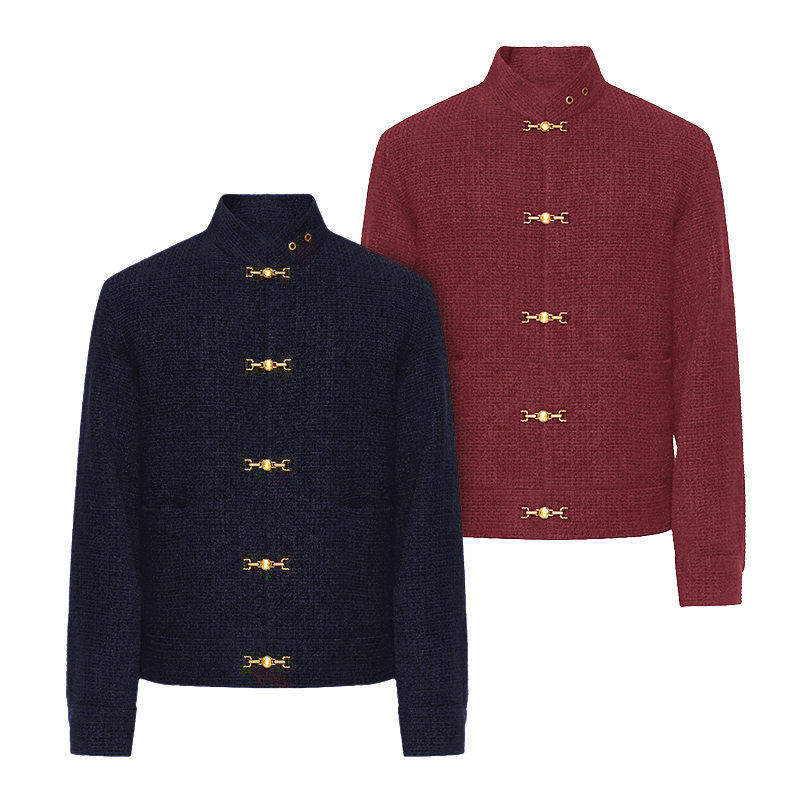 UNXU王嘉尔同款新中式国潮唐装粗花呢编织外套新春潮流气质上衣
