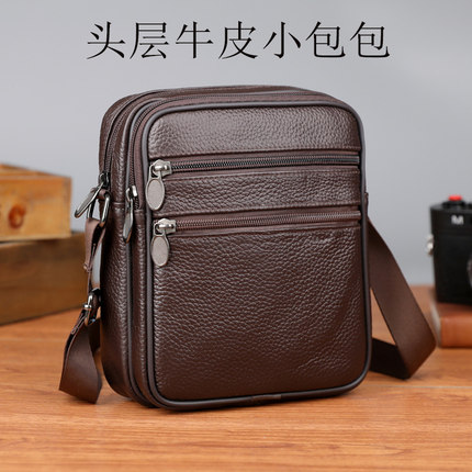 头层牛皮男士斜跨小包软皮单肩包户外休闲皮包斜挎真皮中老年人包