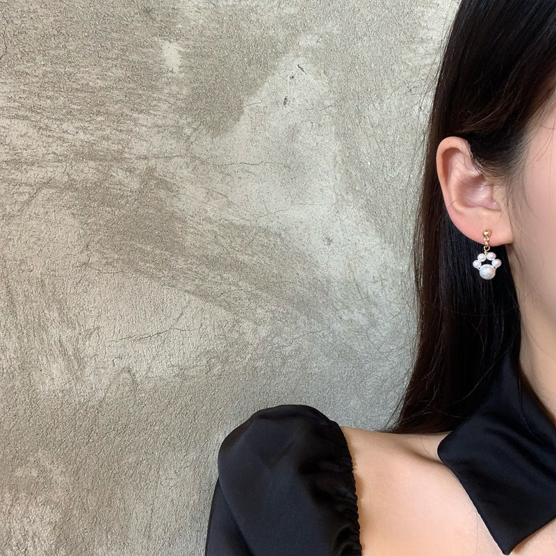 s925银针可爱风猫爪网红珍珠耳环