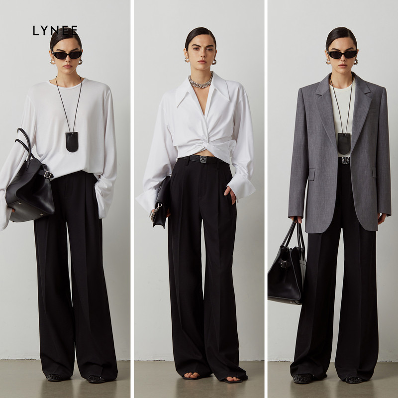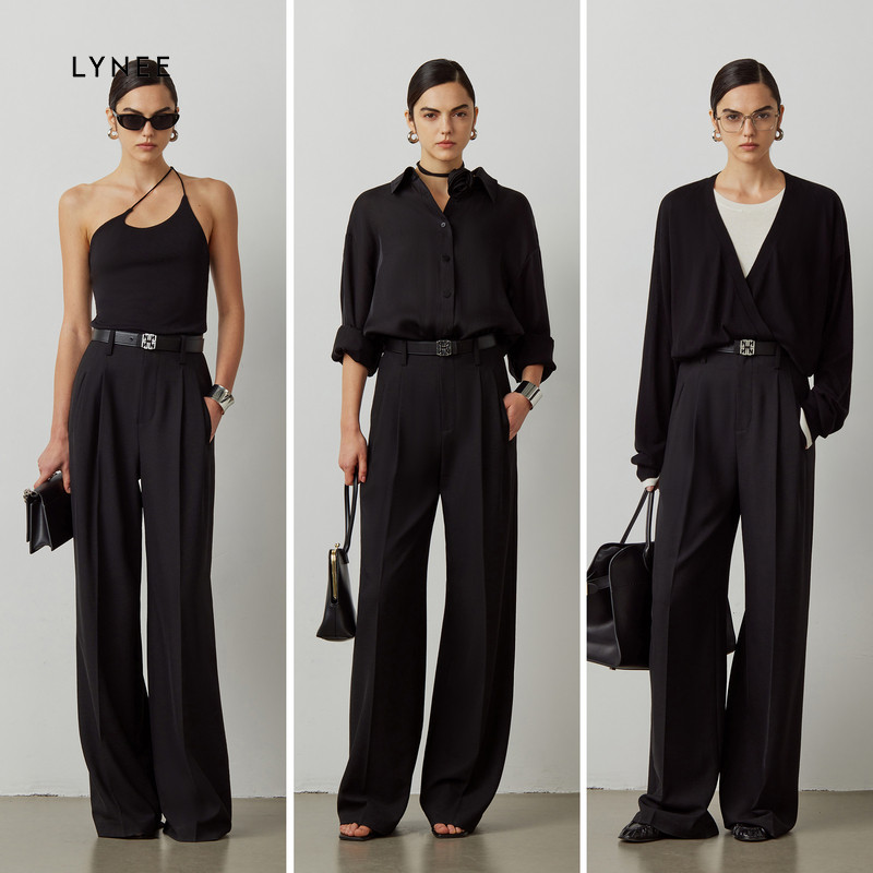 LYNEE 2026年新款抗皱垂感黑色直筒裤女百搭通勤西装裤宽松长裤