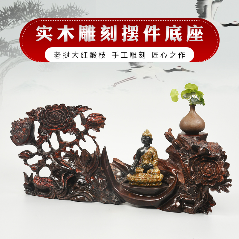 实木雕刻底座奇石花瓶摆件工艺品茶壶底托观音佛像大红酸枝托架