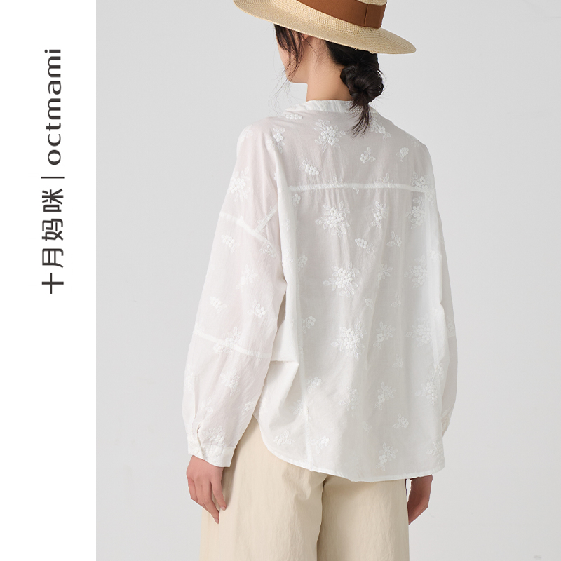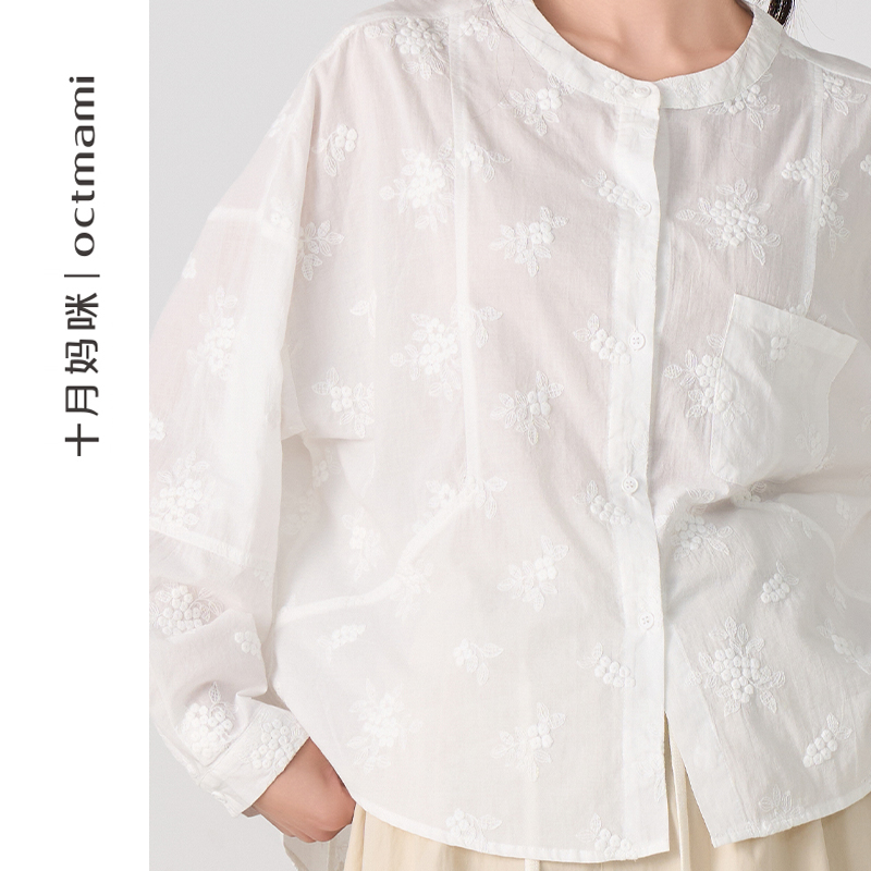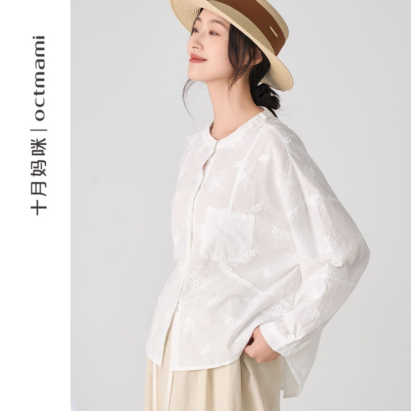 十月妈咪孕妇绣花衬衫2025新款春秋外穿洋气宽松大码法式复古秋装