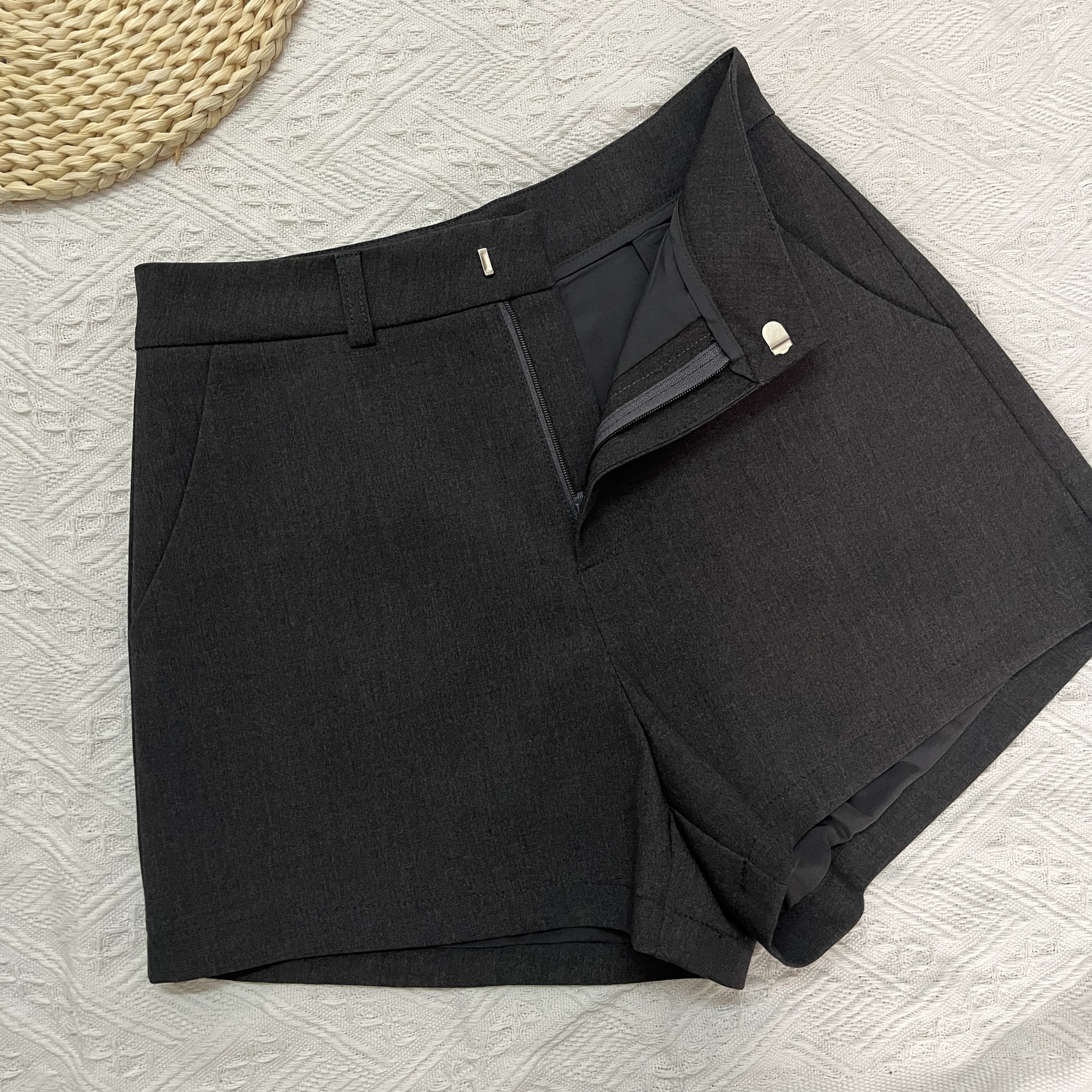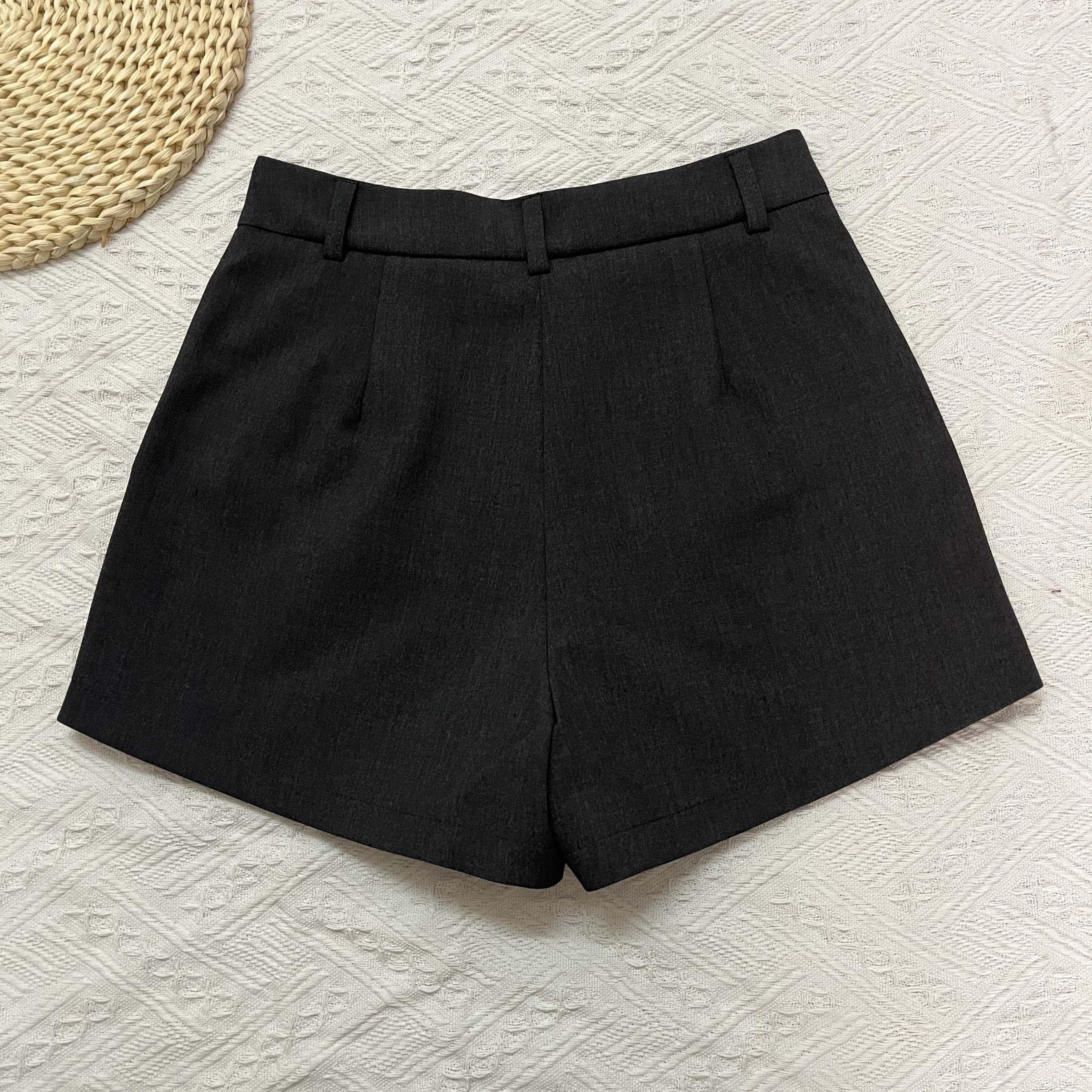 2025春夏新款高级深灰色西装短裤女高腰口袋阔腿外穿修身显瘦热裤
