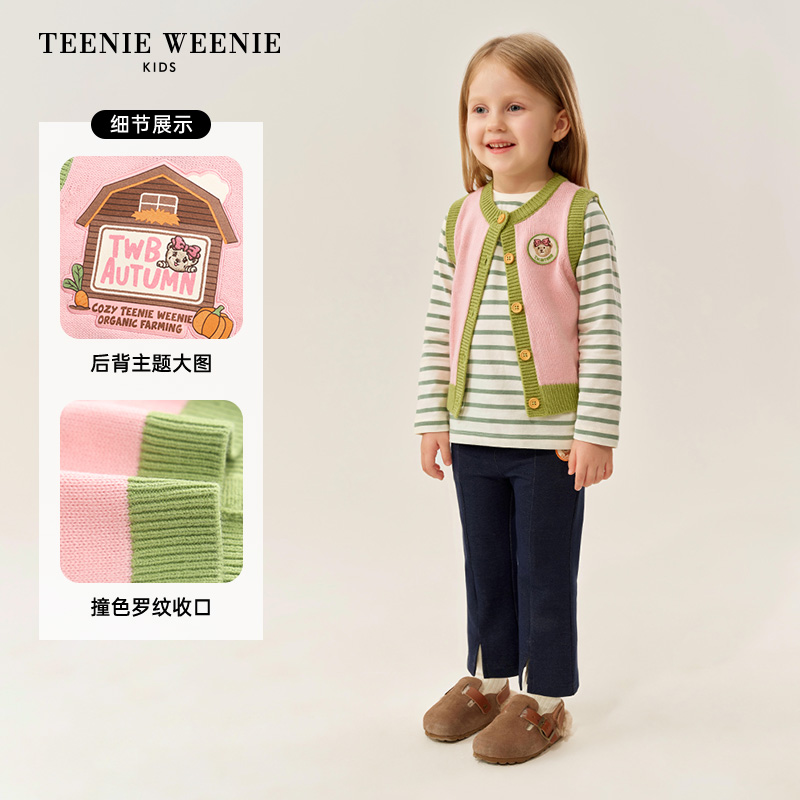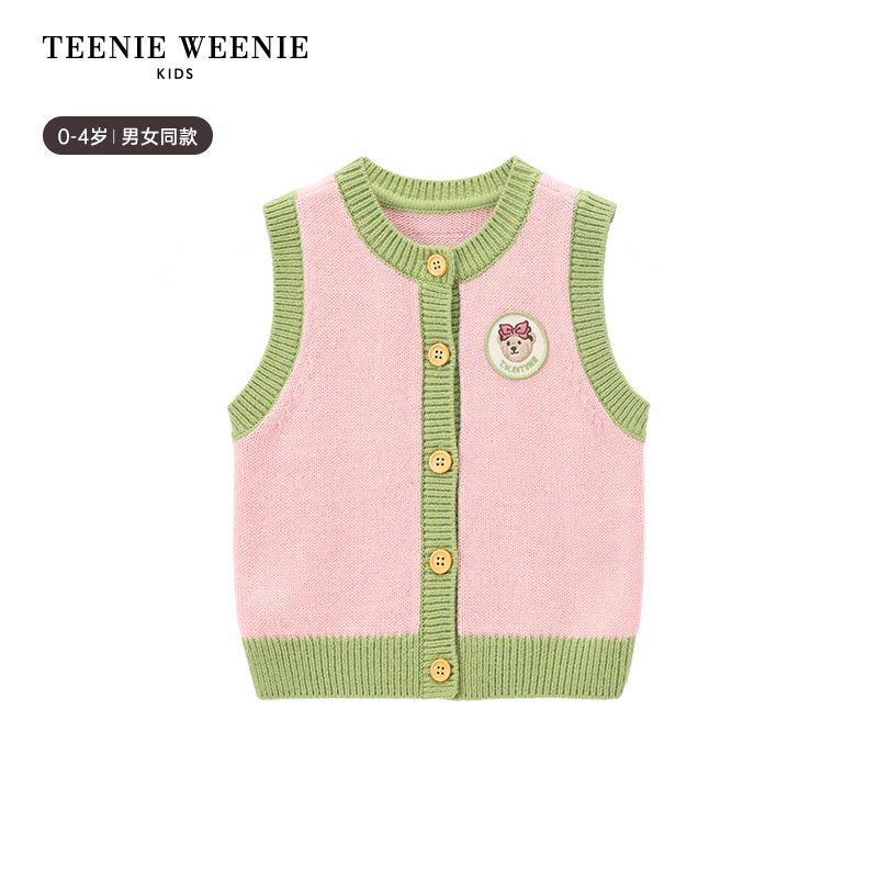 TeenieWeenie Kids小熊童装25新款秋季男女宝宝撞色毛织马甲背心