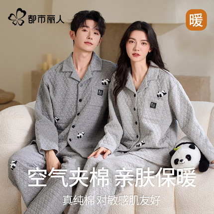 都市丽人纯棉情侣睡衣女款秋冬季空气夹棉加厚男士可外穿家居服