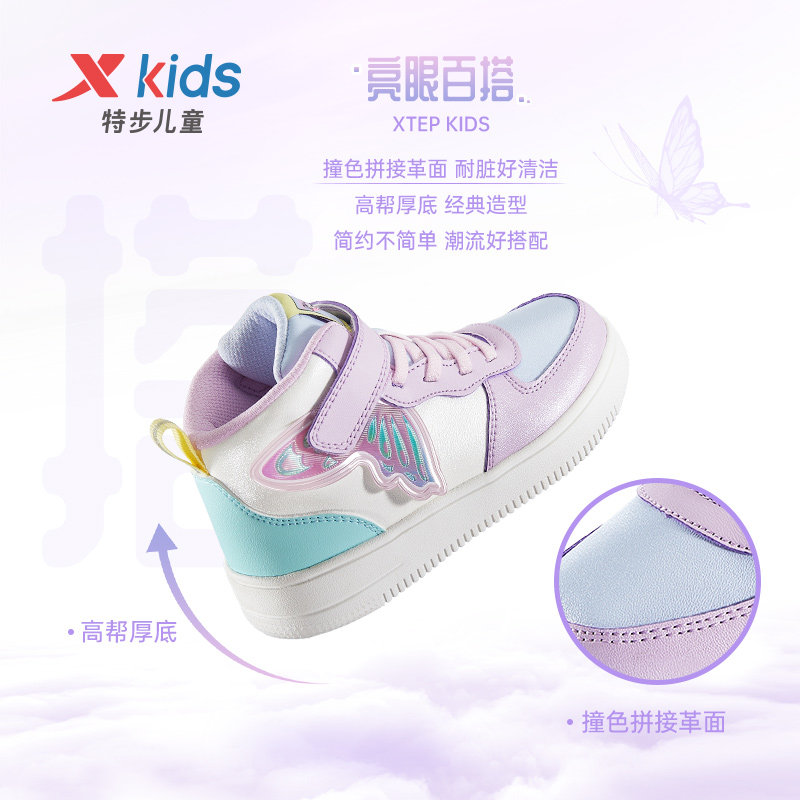 特步儿童2026年春季新款女小童鞋子运动鞋女孩休闲高帮板鞋滑板鞋