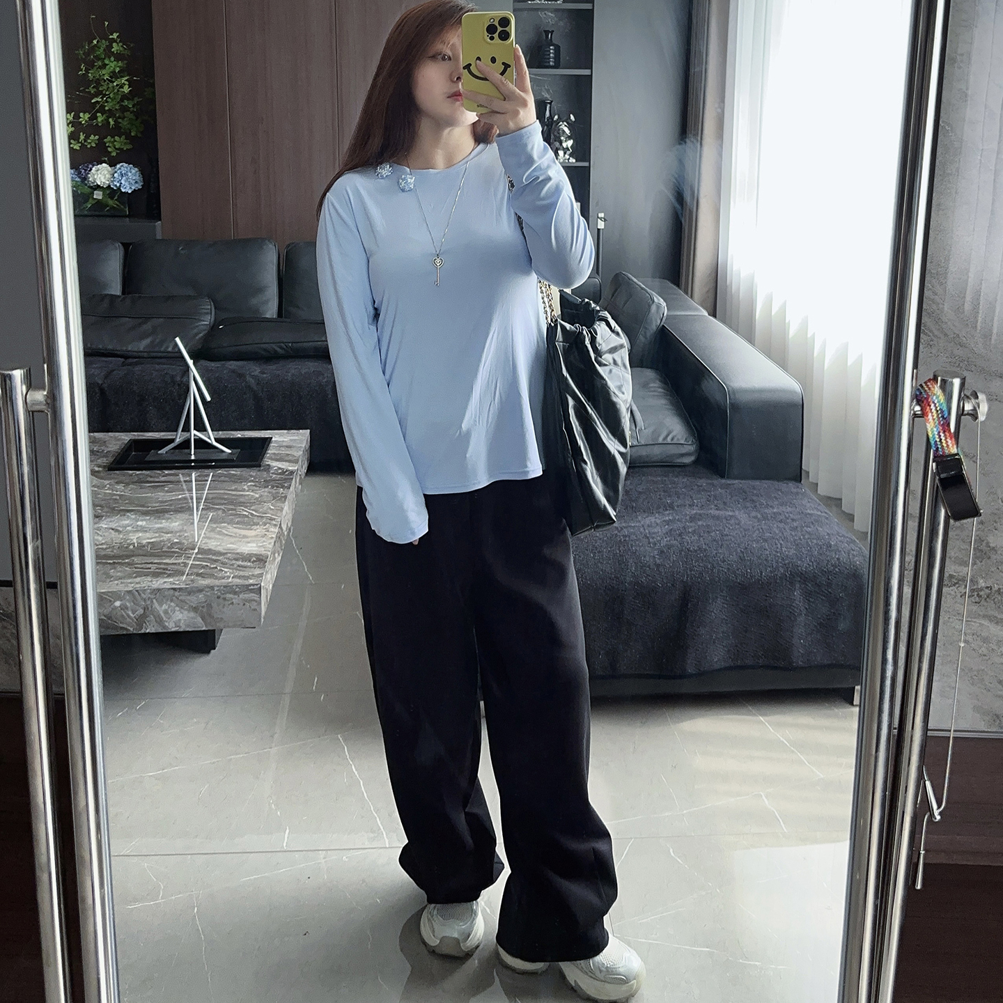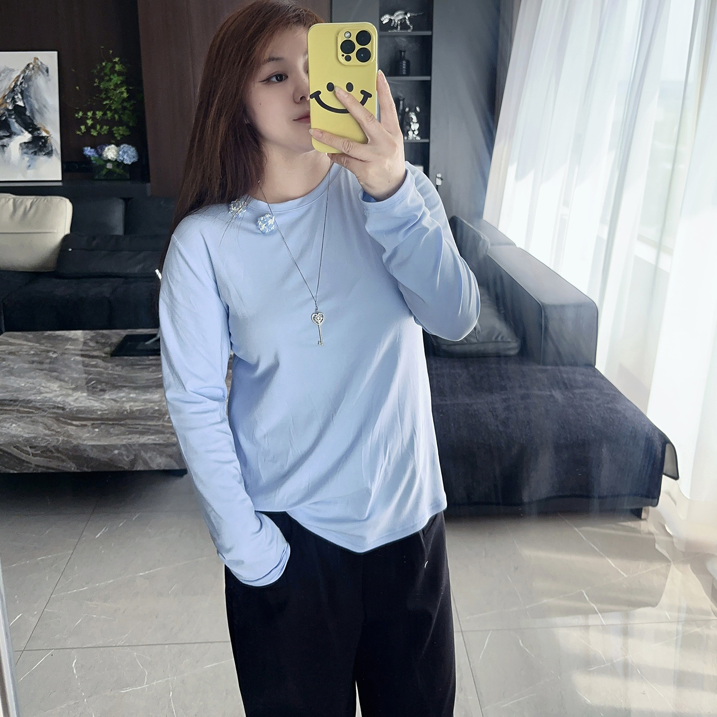 大码女装2025年早秋装新款胖mm打底衫T恤重工珠花莱赛尔内搭上衣