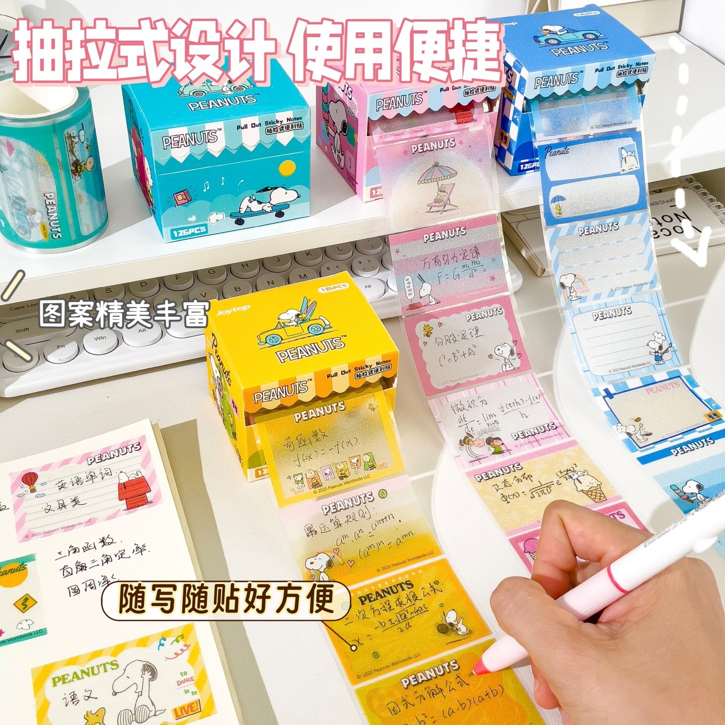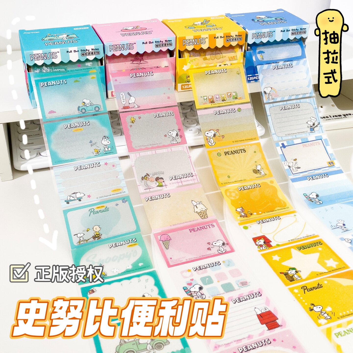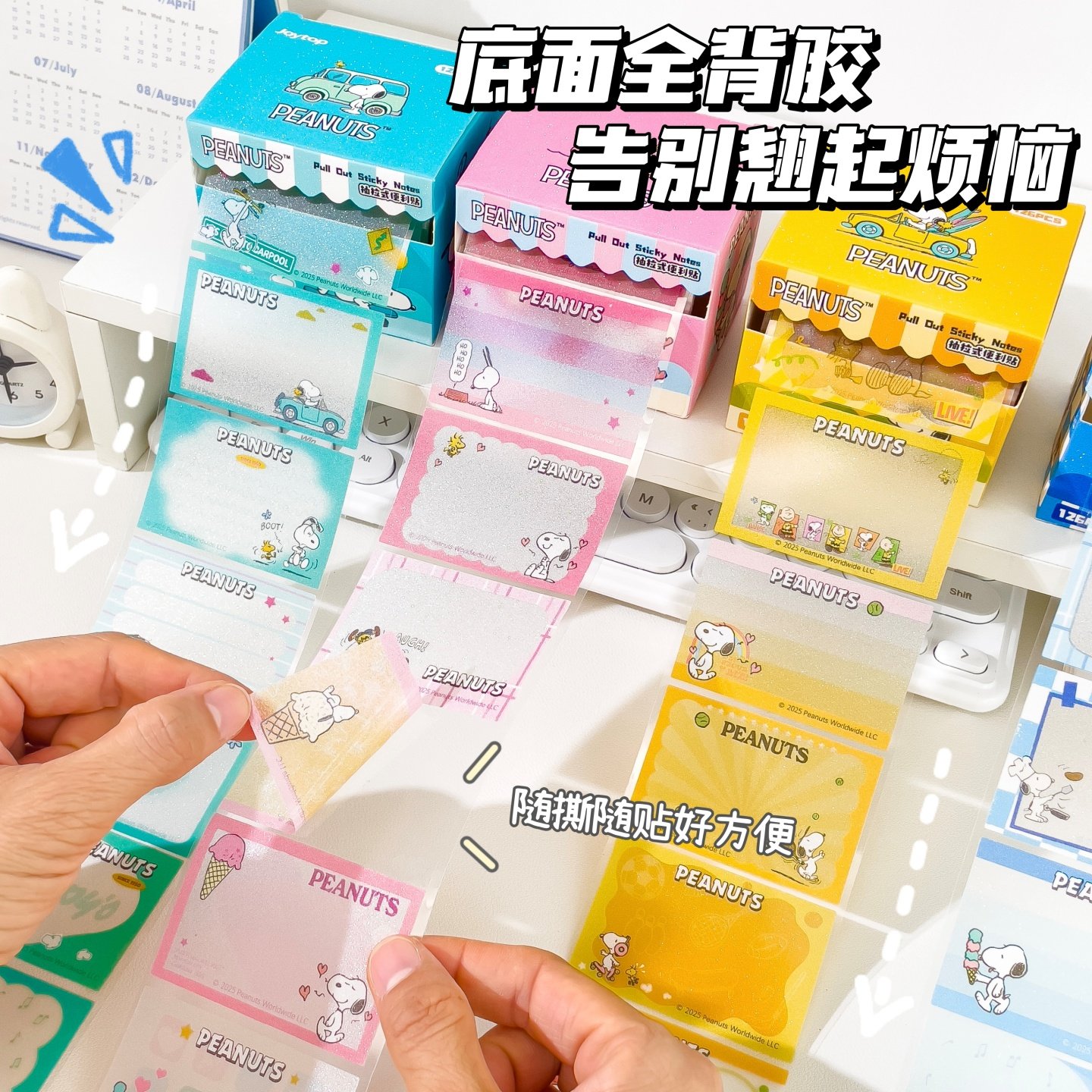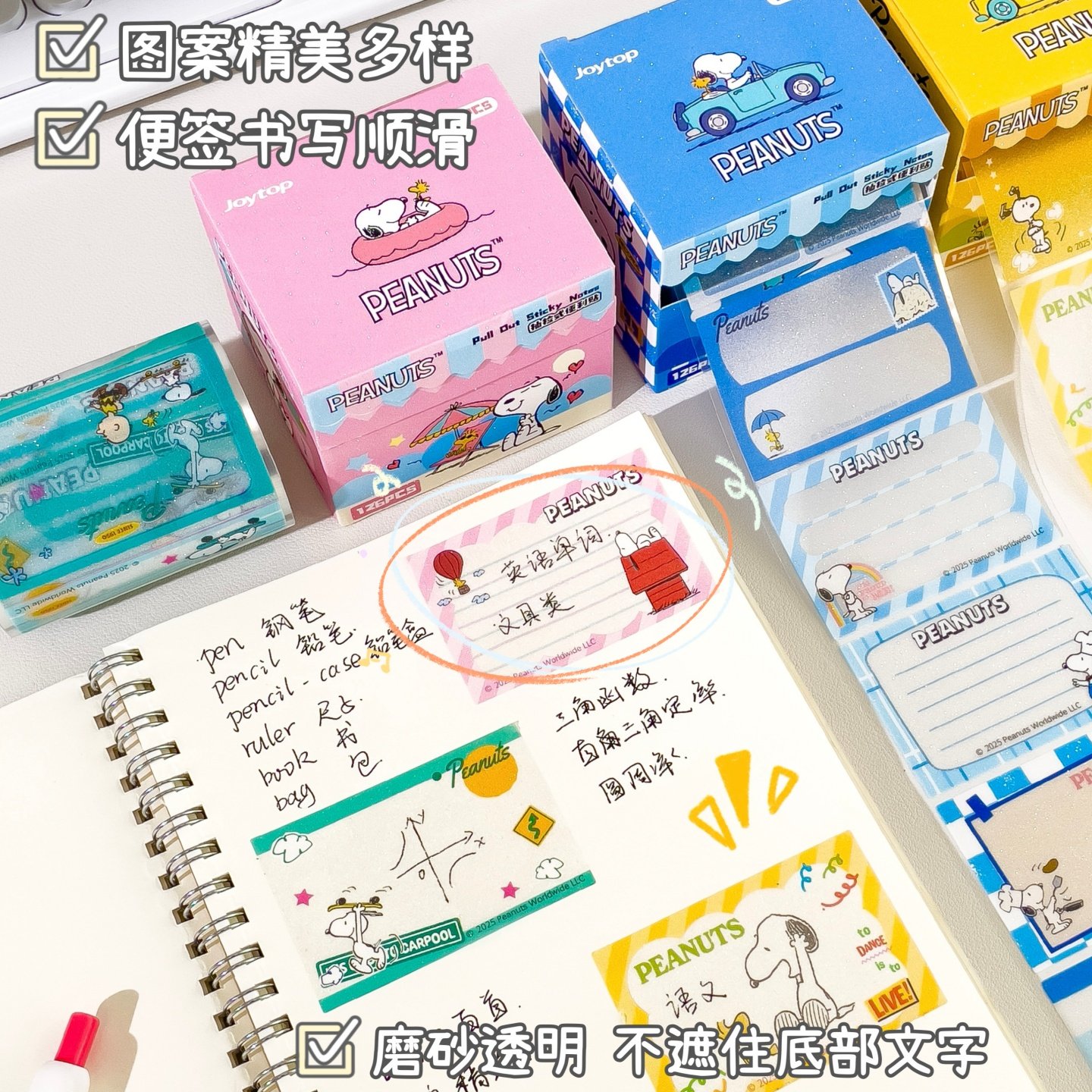 悦木史努比正版授权抽拉式便利贴透明磨砂卡通创意全粘式便签贴纸