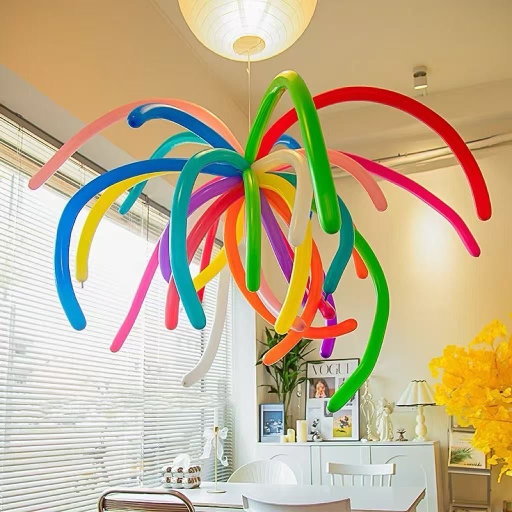 男女孩酒店包间生日派对布置多巴胺烟花长条气球万圣节场景装饰