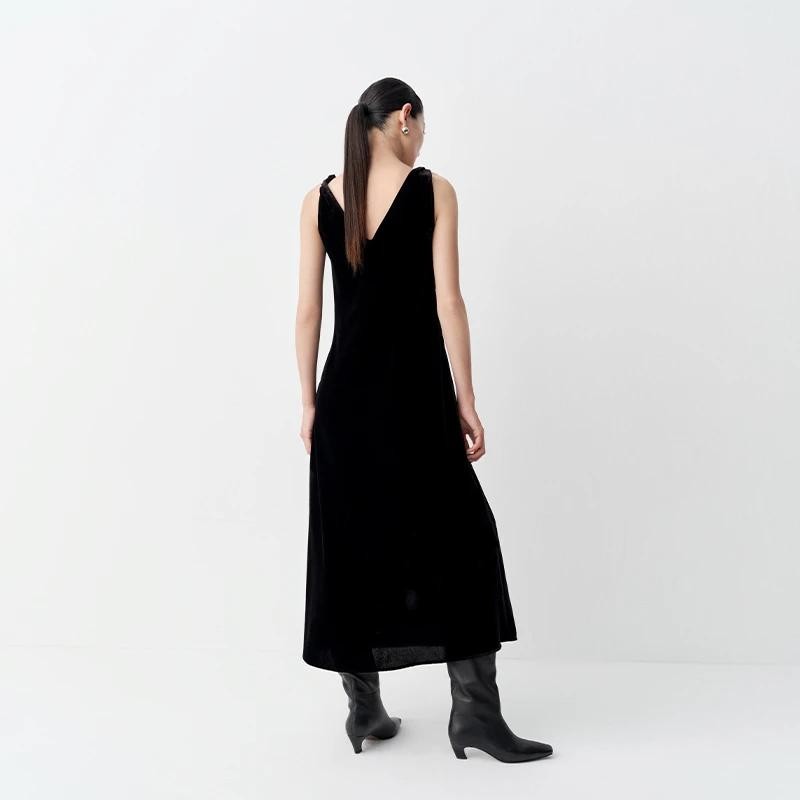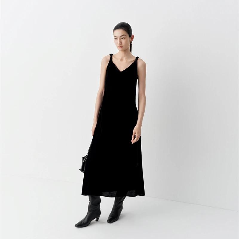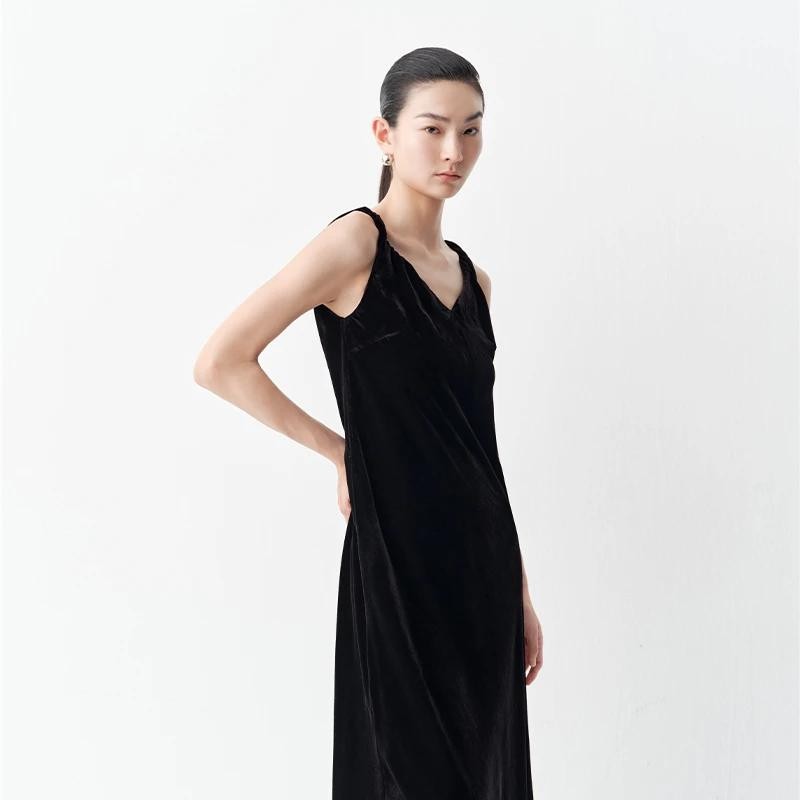 艾诺丝2025夏新款时尚长款丝绒吊带连衣裙女显瘦903109