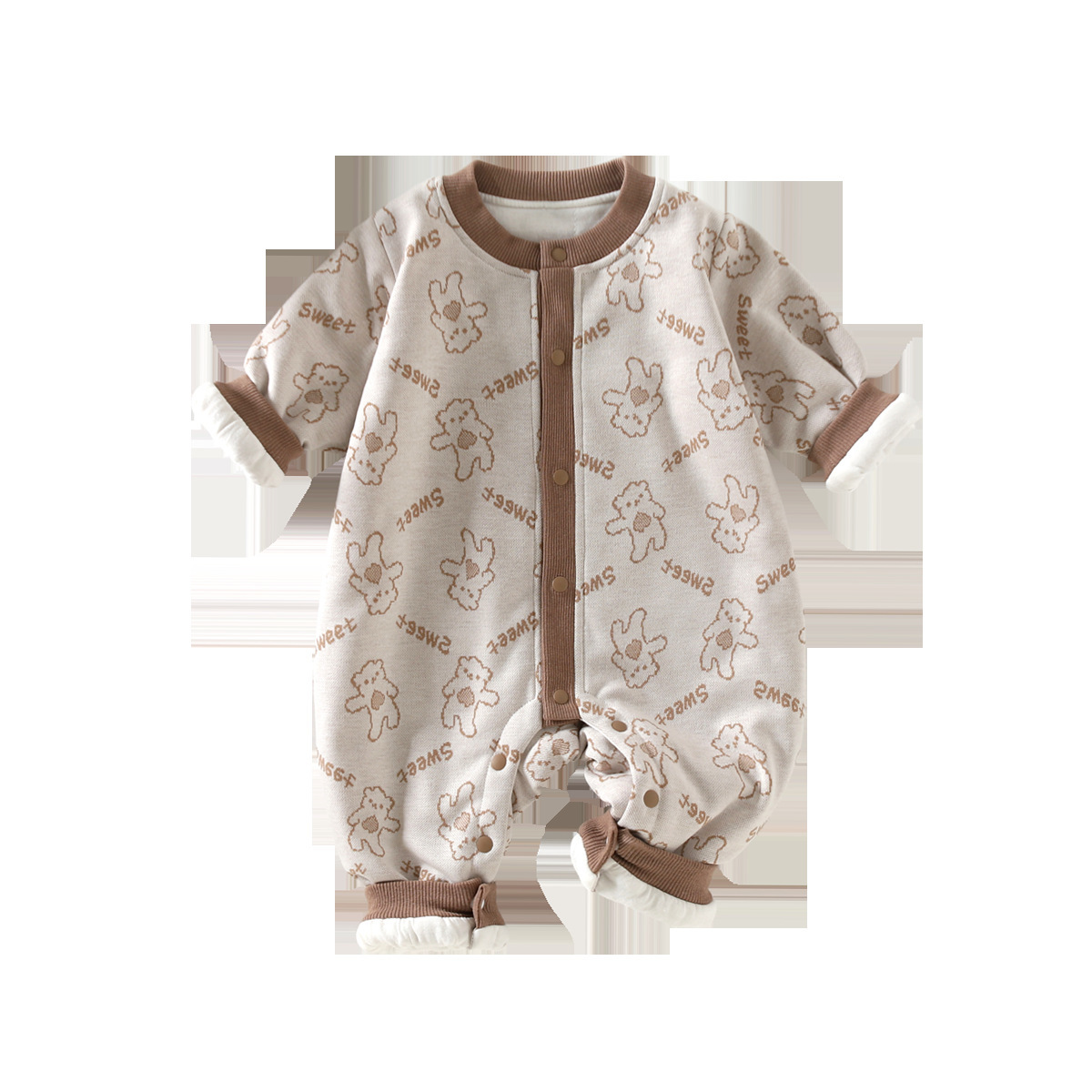 100g新生儿连体衣秋冬男女宝宝婴儿加棉保暖爬服外出衣服a类薄棉