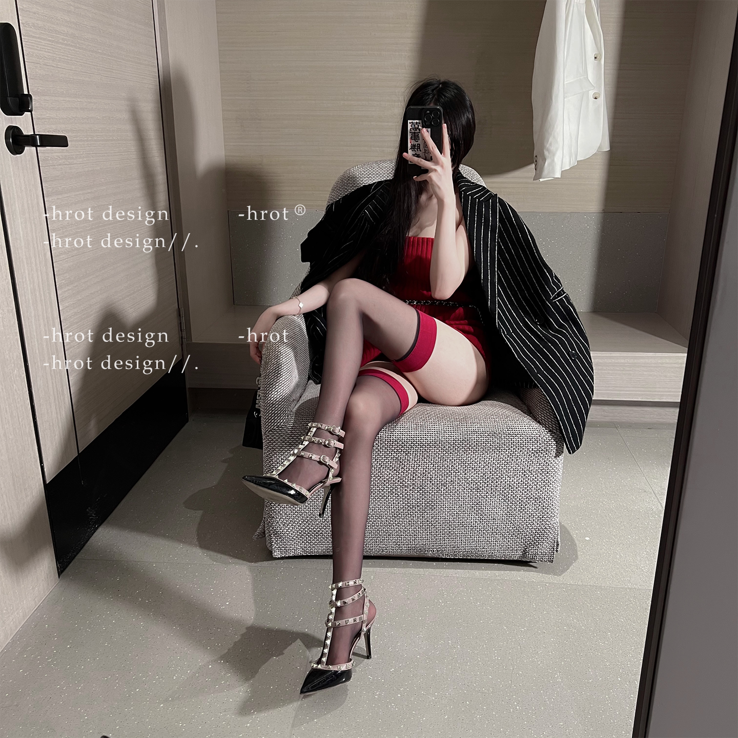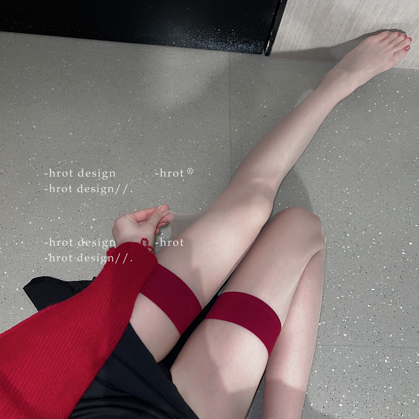 高级感红边撞色黑色过膝丝袜