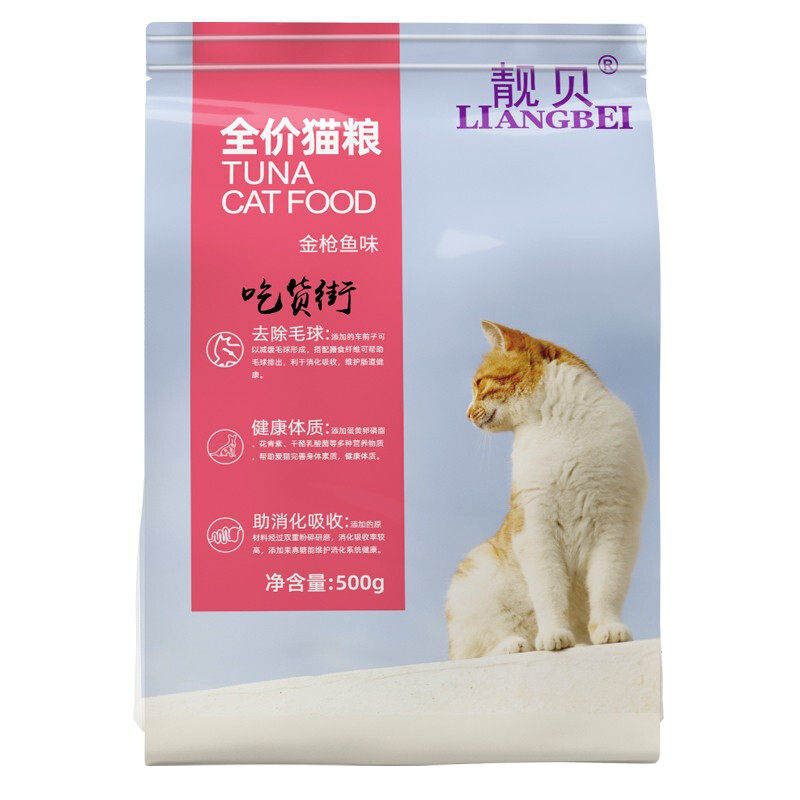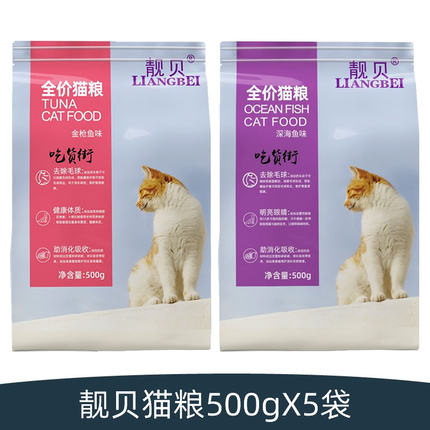 靓贝猫粮吃货街成猫幼猫老年猫通用型深海鱼金枪鱼味猫粮500gX5袋