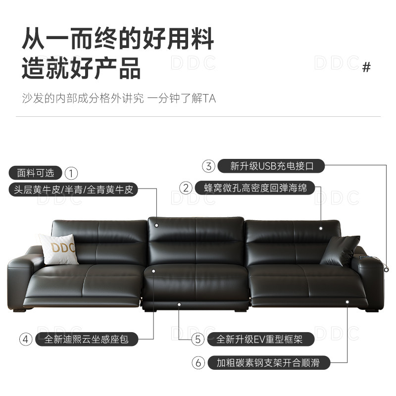 焕新补贴DDC加厚头层全青真牛皮客厅电动多功能沙发黑色2025新款