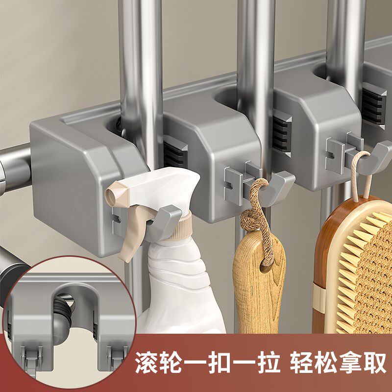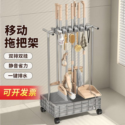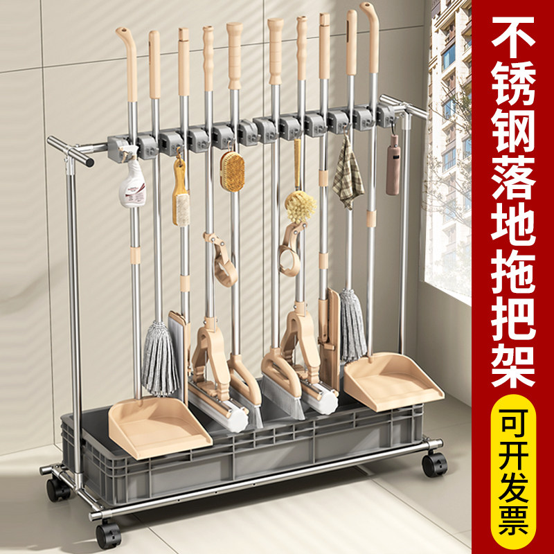 不锈钢落地式拖把架清洁工具扫把扫帚挂钩收纳夹可移动拖布拖把夹
