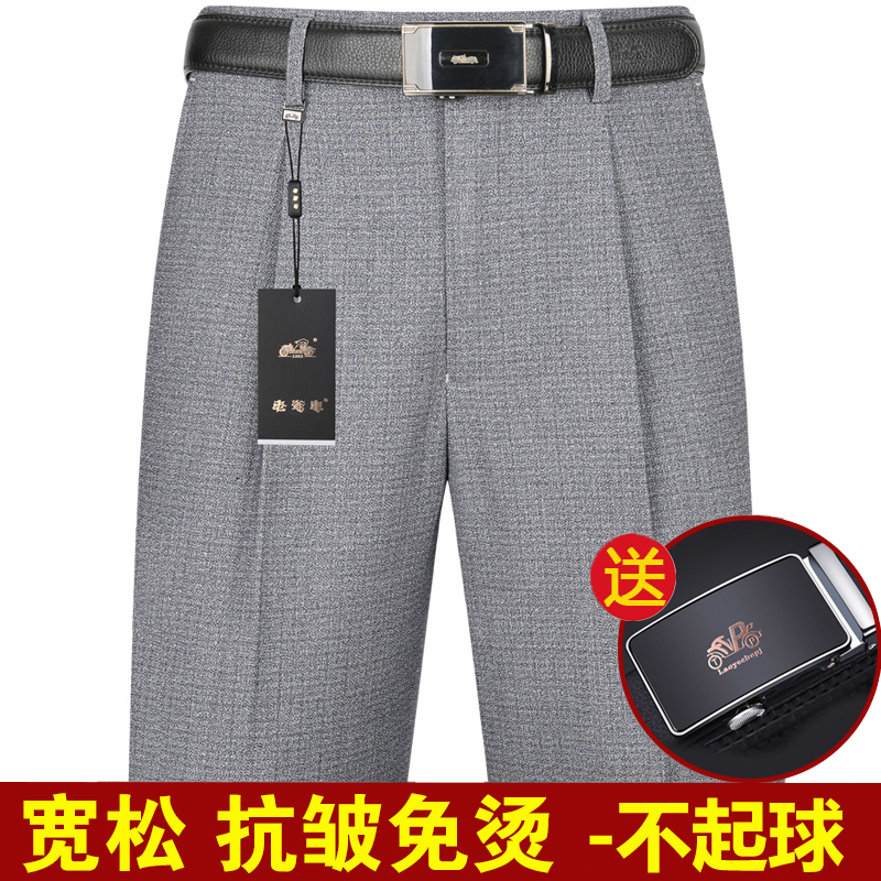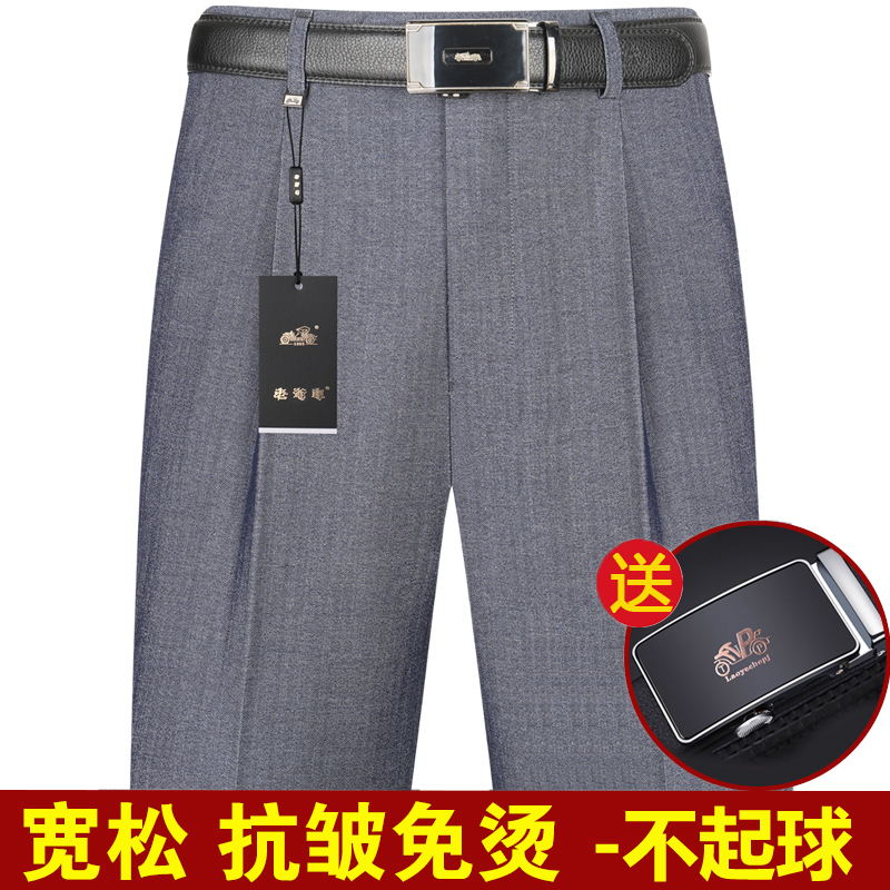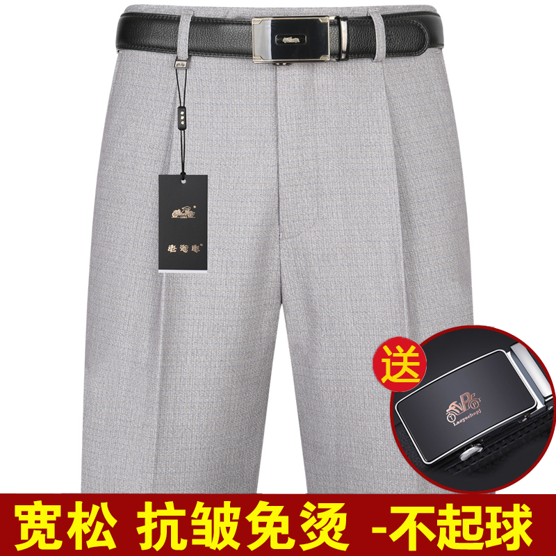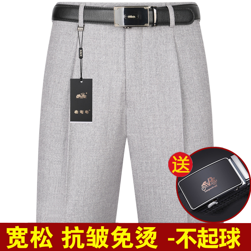 老爷车垂坠感爸爸西裤男中老年人宽松高腰深档直筒夏季薄款男裤子