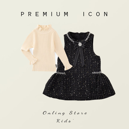 小香风女童背心裙冬季加绒气质公主裙洋气小女孩蝴蝶结黑色连衣裙