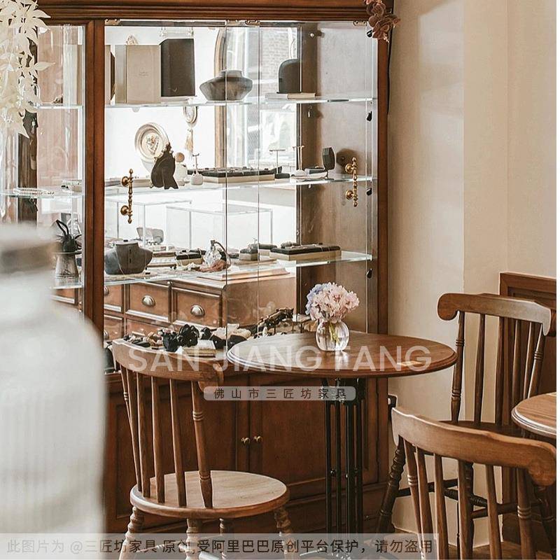 复古咖啡厅桌椅组合美式实木奶茶店椅子甜品烘焙店网红奶茶店桌子