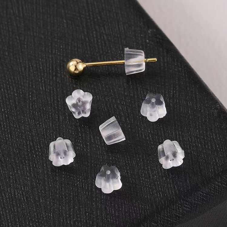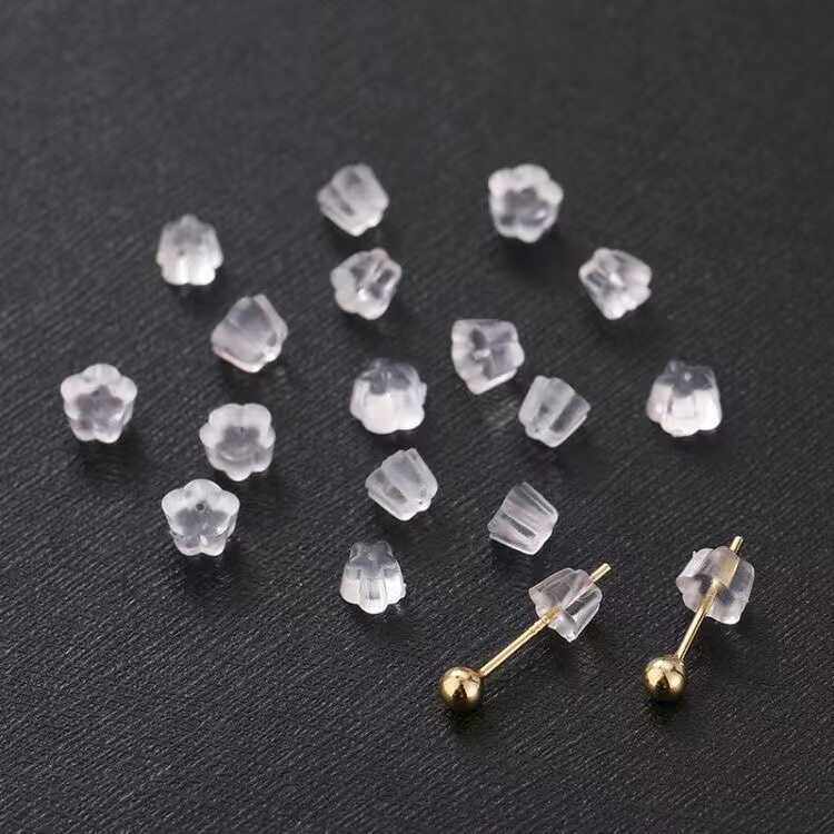 梅花透明橡胶硅胶防过敏塑料耳塞耳堵diy耳环耳钉皮堵头后塞耳帽