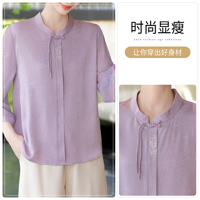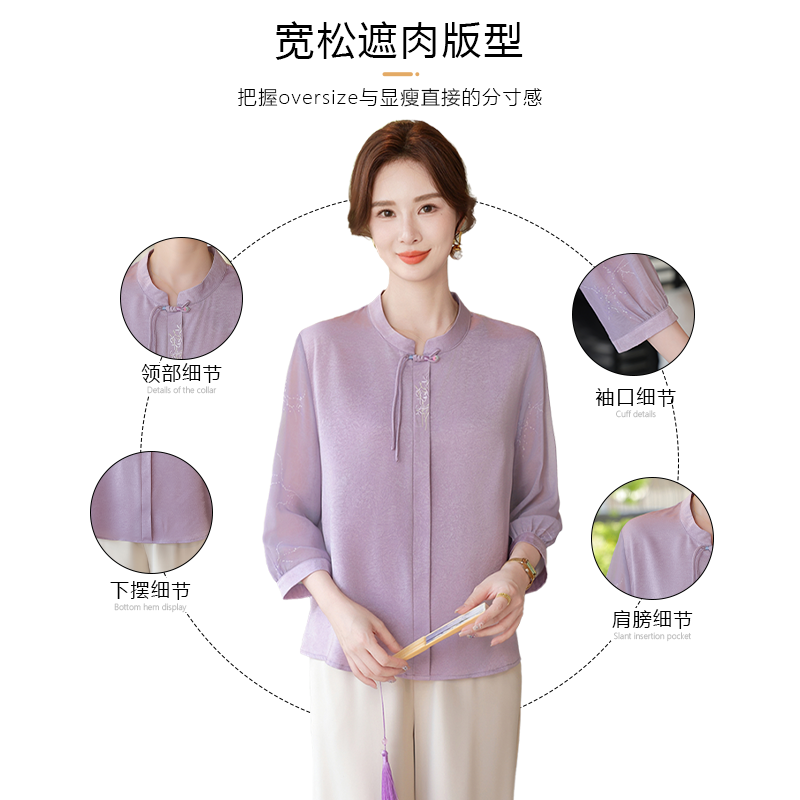 中年妈妈夏装套装洋气薄上衣七分袖中老年女夏季时尚国风T恤小衫