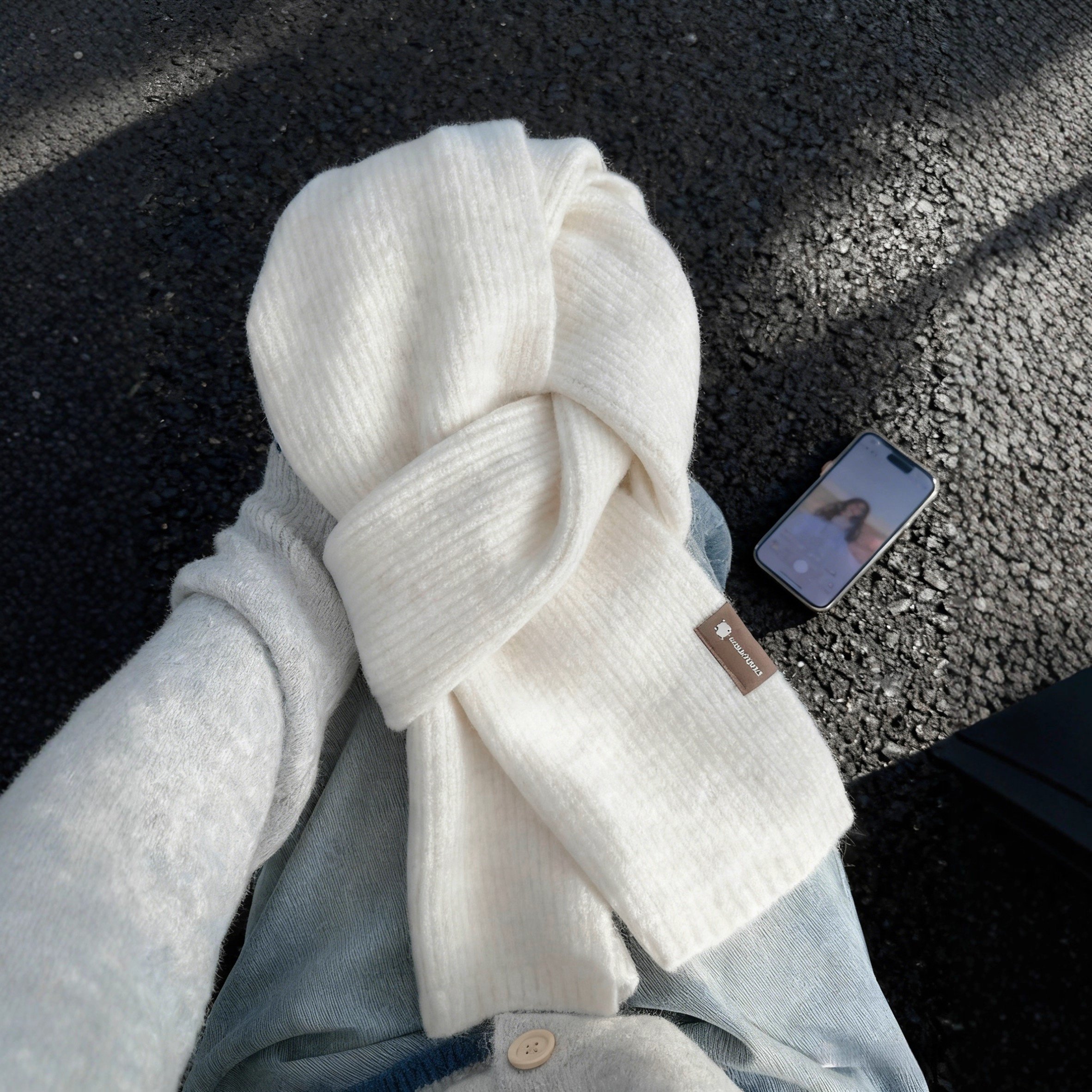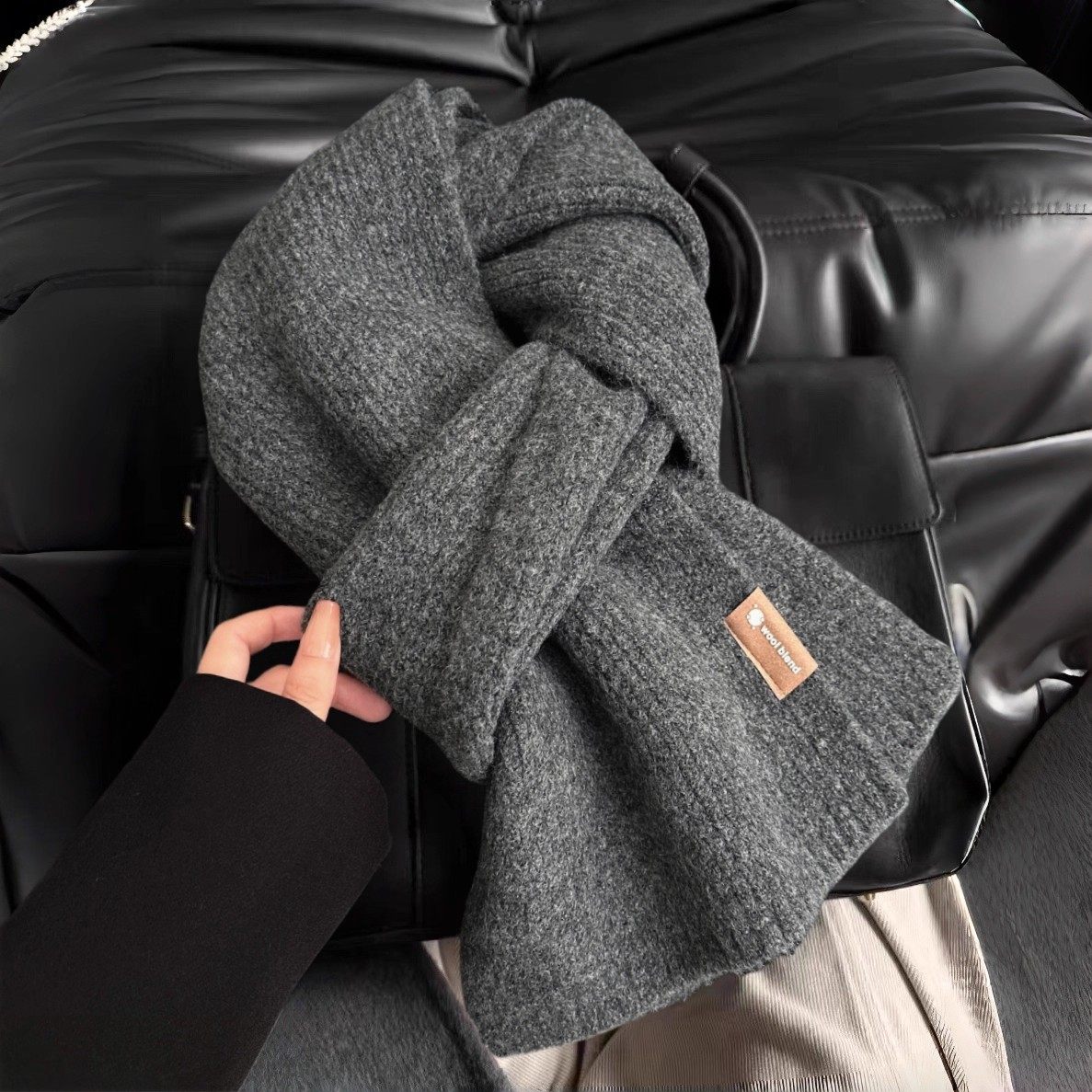 灰色高级感含羊毛情侣围巾韩系女冬季2025新款针织保暖学生围脖男