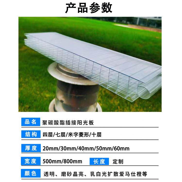40mm乳白色pc插接板办公室内隔断商业门头背景墙幕墙pc插接阳光板