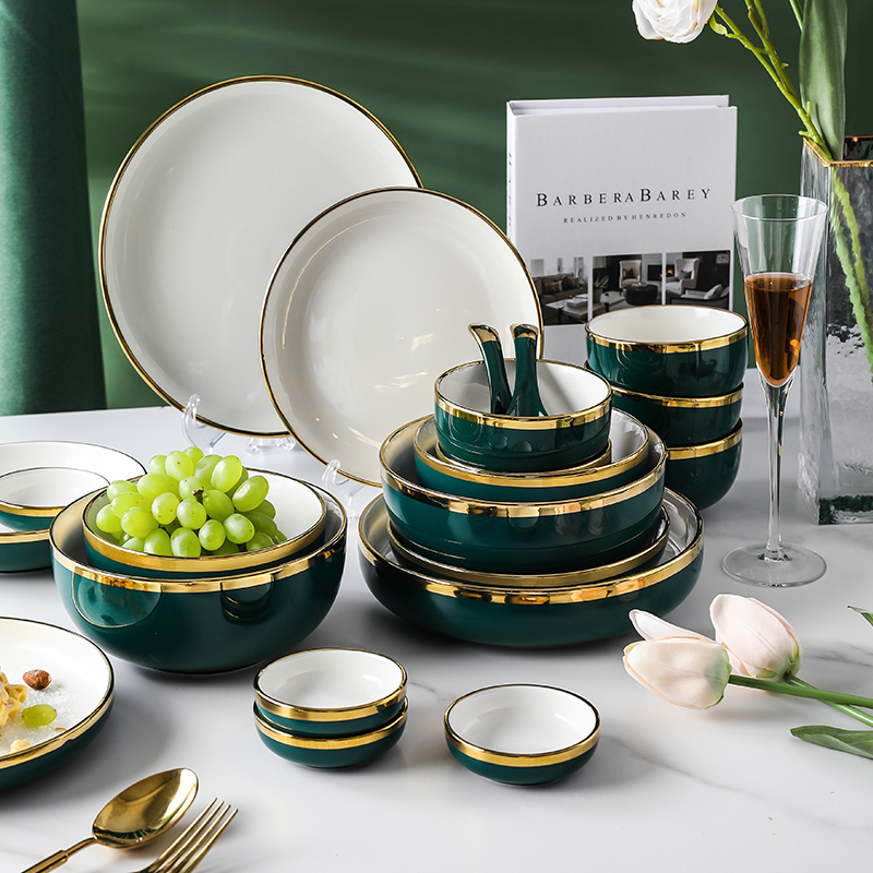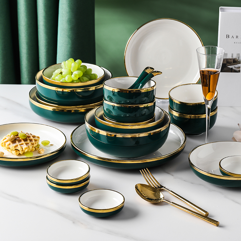迈卡伦碗碟套装陶瓷金边高颜值餐具欧式盘子家用饭碗菜盘碟子轻奢