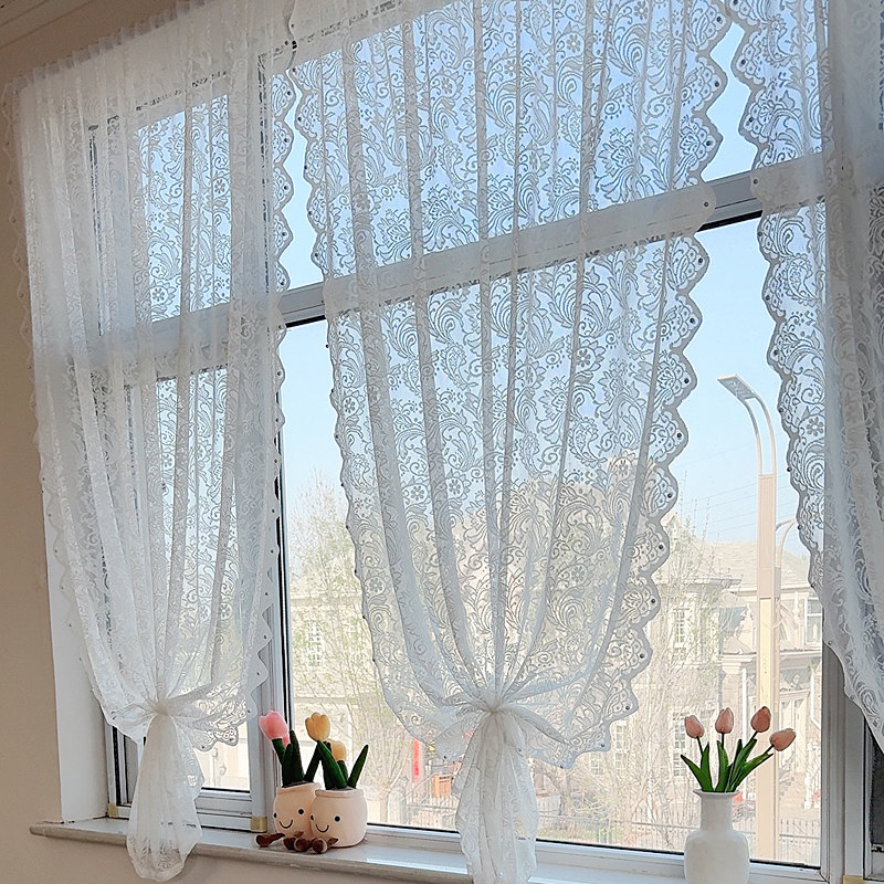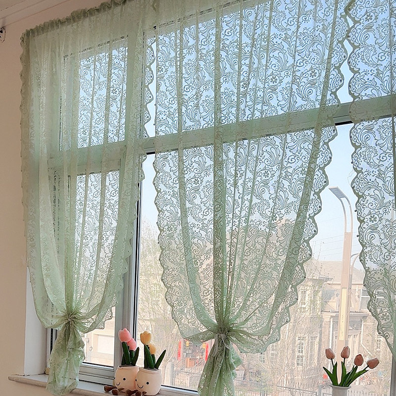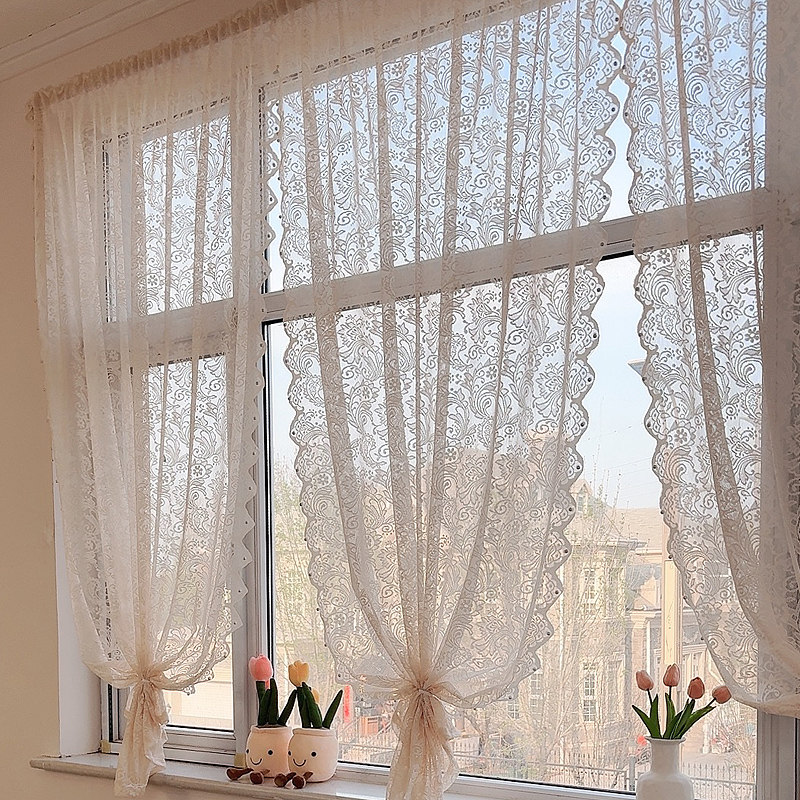 蕾丝窗帘布2025新款遮光免打孔魔术贴飘窗卫生间纱门帘透光不透人