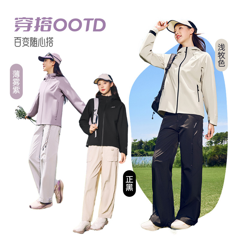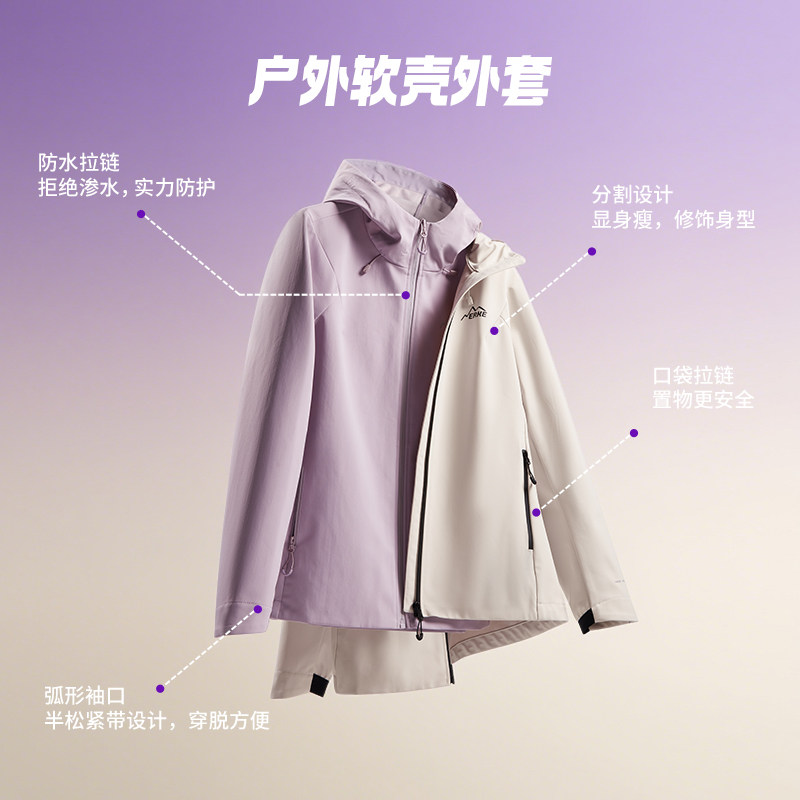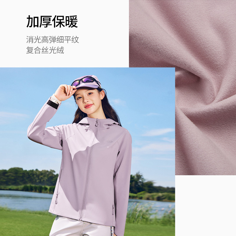 鸿星尔克外套女款冬季新款女士三防加绒软壳好看冲锋运动夹克风衣