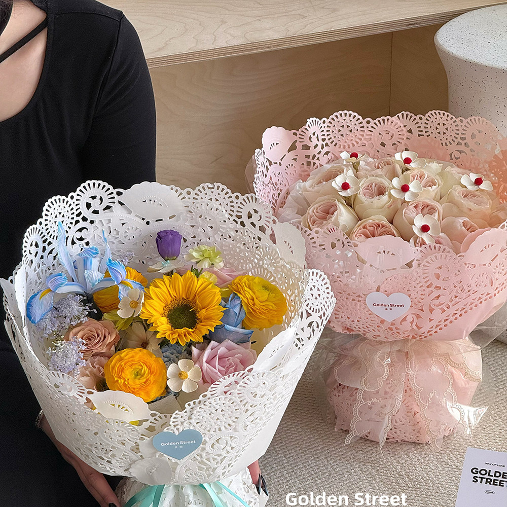 海盐芝士鲜花礼花花束蕾丝花纹纸包装花艺手工diy材料花店资质纸