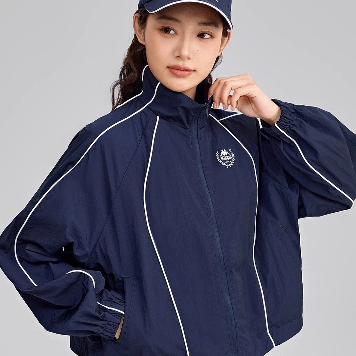 Kappa卡帕背靠背2025新款户外运动外套女款复古立领夹克开衫上衣