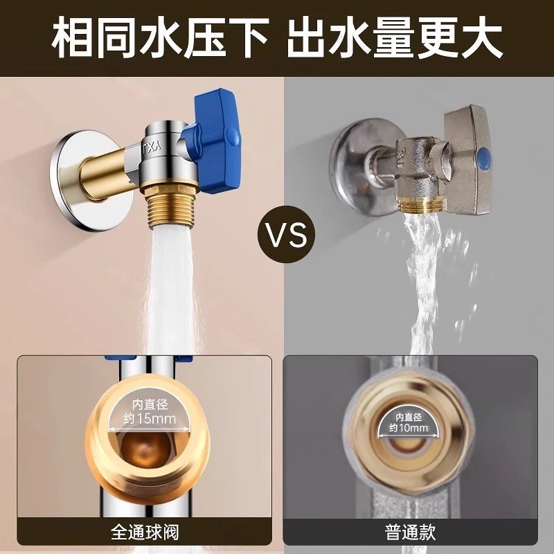 全铜加长角阀家用热水器专用大流量开关冷热球阀卫生间三角阀