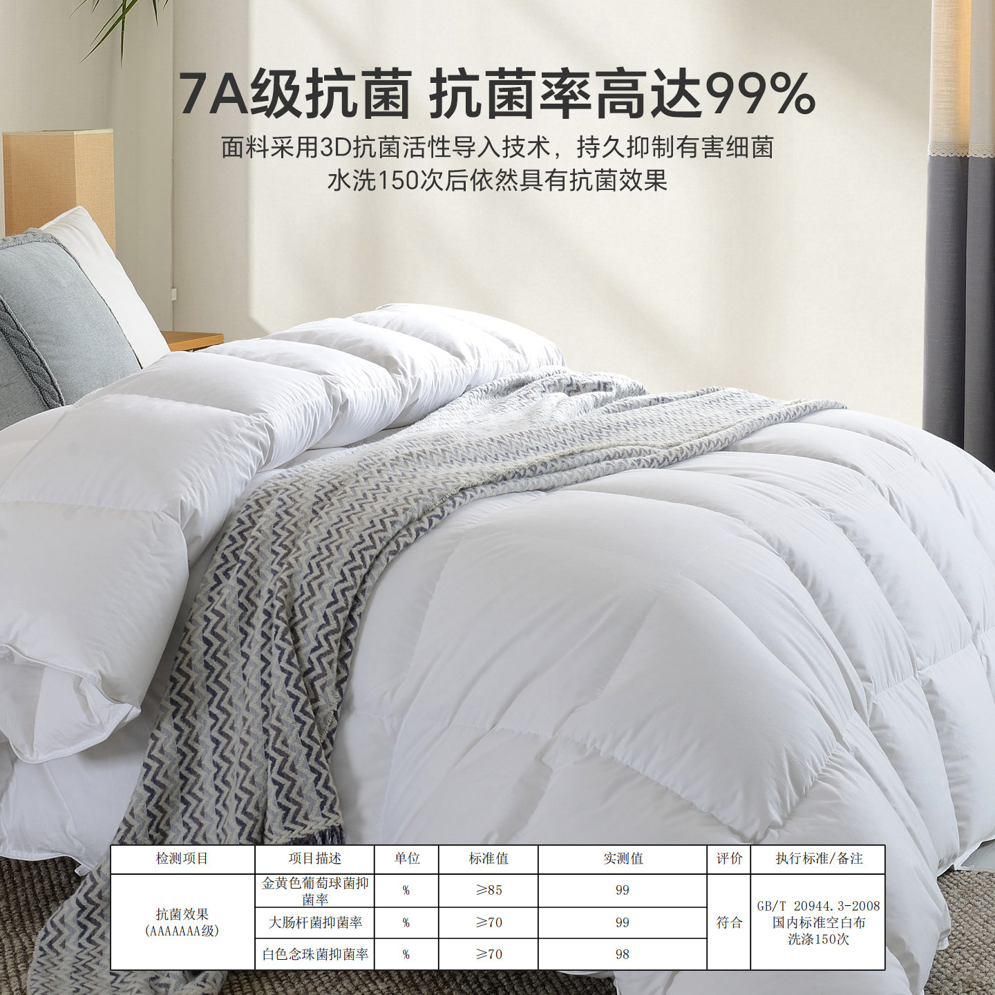 鸿润7A抗菌95鹅绒被100S全棉贡缎