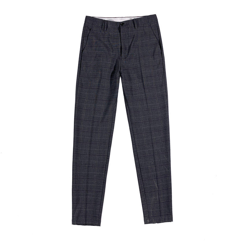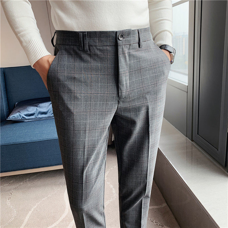 修身格子西裤男士休闲商务正装夏季薄款潮流百搭小脚西装长裤九分