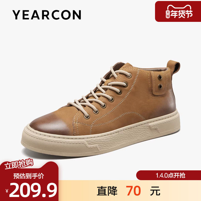 意尔康男鞋2025秋冬真皮时尚复古板鞋加厚运动休闲鞋系带高帮鞋