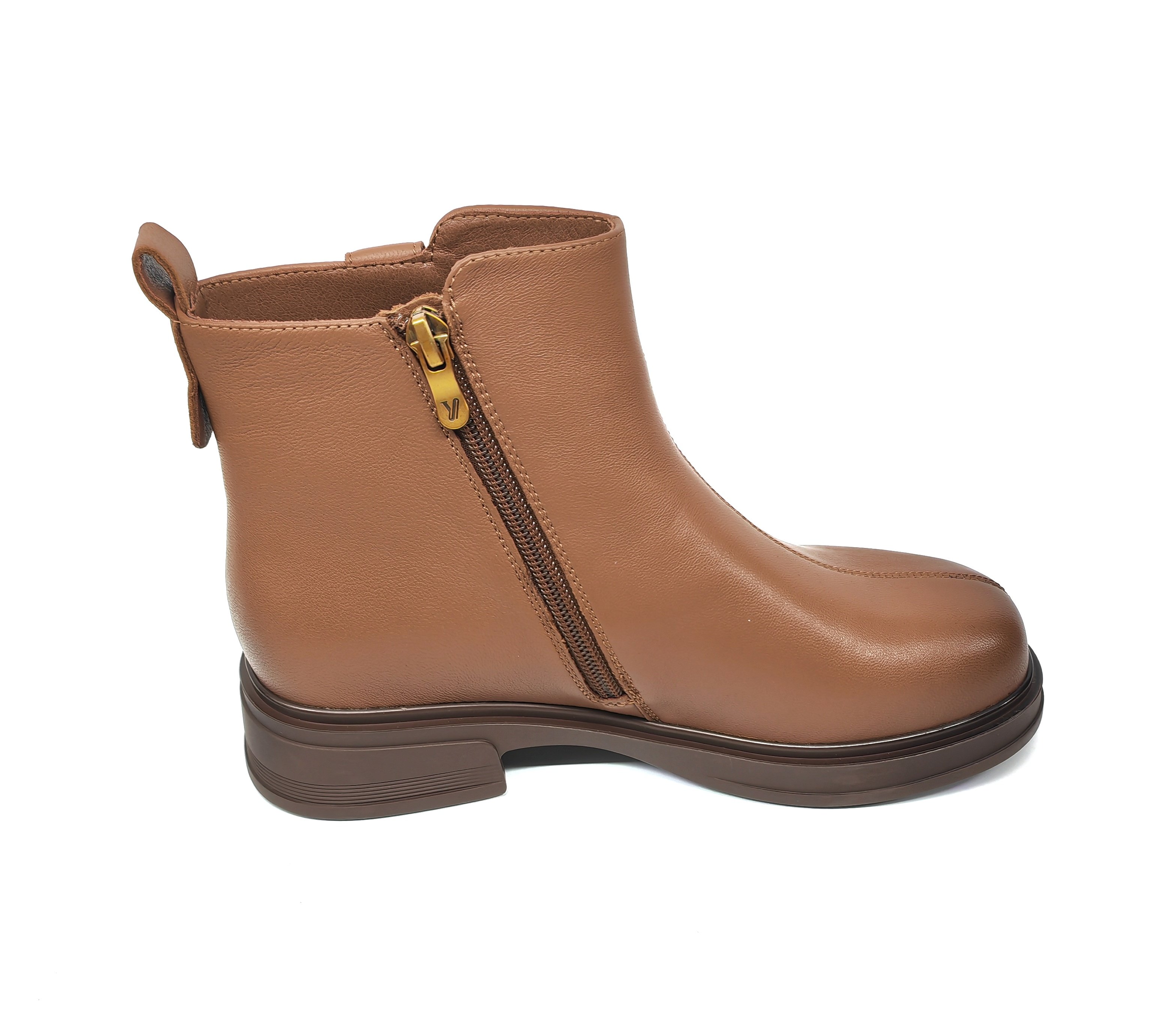 意尔康女鞋2025冬季羊皮女靴时尚百搭低跟鞋粗跟短靴5862AM15651M