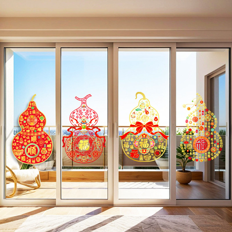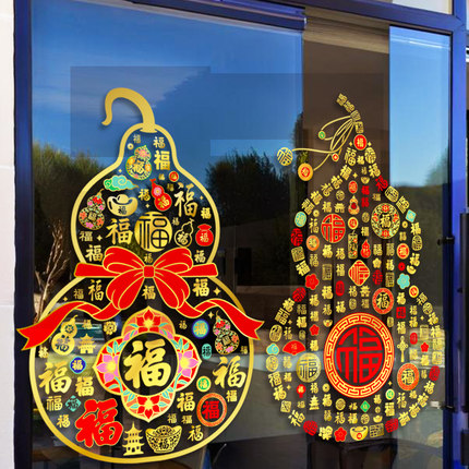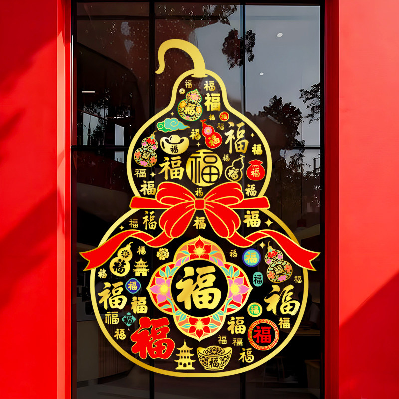 新款马年福字窗花葫芦无胶静电贴防水玻璃贴过年装饰国潮福字贴纸